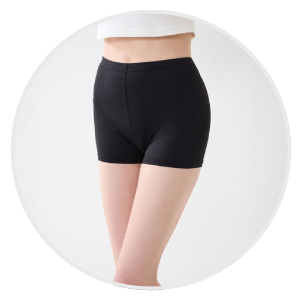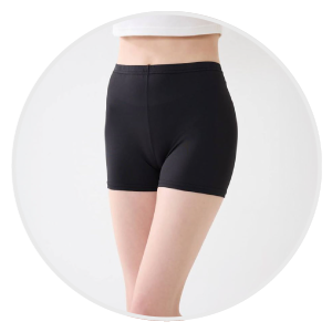 ブルーデイでも安心。サニタリー対応の1分丈レギンス。<br><br>【仕様】<br>・クロッチ部分と前後に防水シートが付いているので、モレやズレが気になる日のオーバーパンツとしておすすめ。<br>・フロントのお腹側には便利なポケット付き。<br>・ウエストゴムは縫い付けてあるため、ねじれにくい。<br>・ストレッチ性があり、やさしいフィット感のある履き心地。<br><br>【素材】<br>・さらりとなめらかな綿混素材で、シーズン問わず着用可能。<br><br>