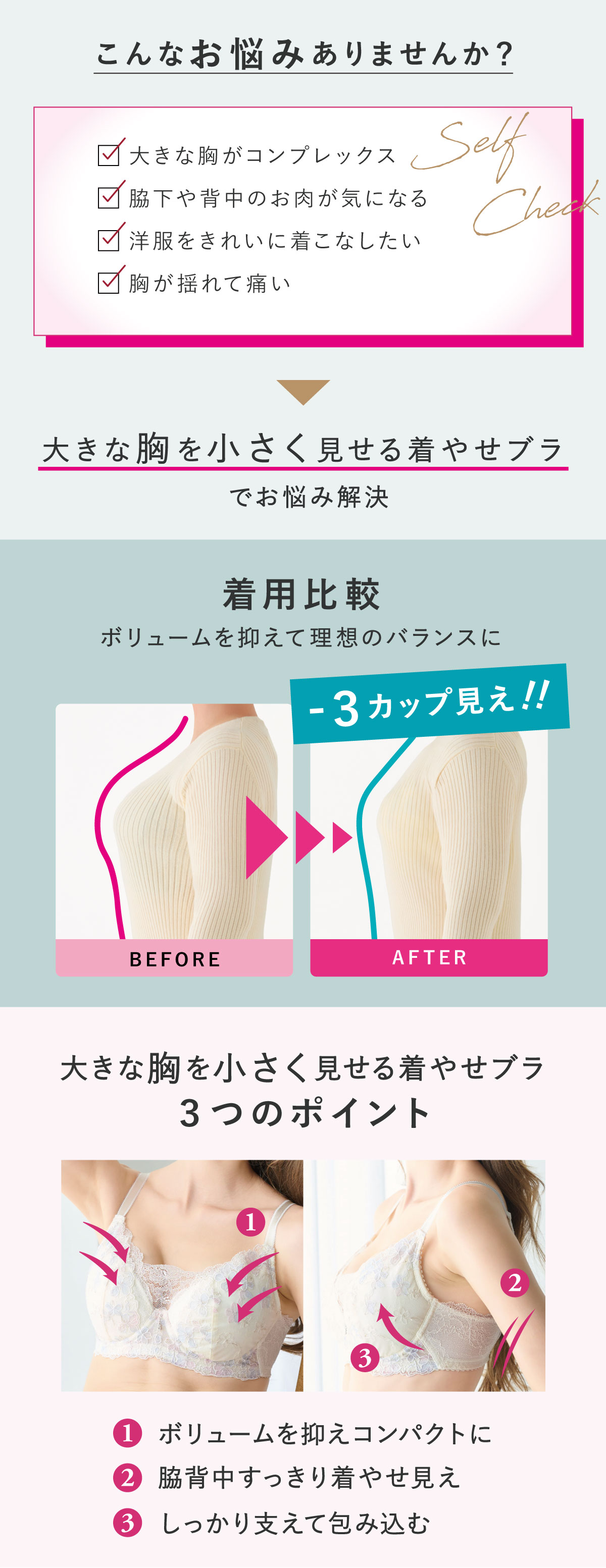 大きな胸を小さく見せる着やせブラ 大きな胸を小さく見せる着やせブラ