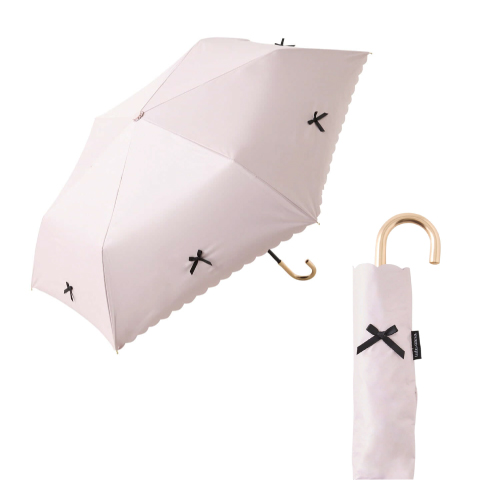 [UVカット・遮光率100%] 裾スカラップリボン付き 折り畳み日傘 (晴雨兼用) CHECK |