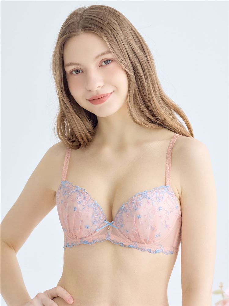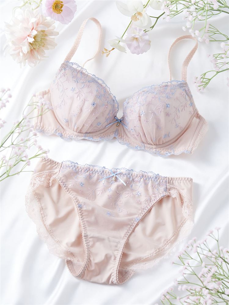 線書き花刺繍ノンワイヤーブラ&ショーツセット