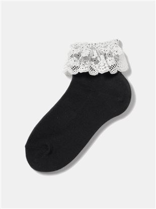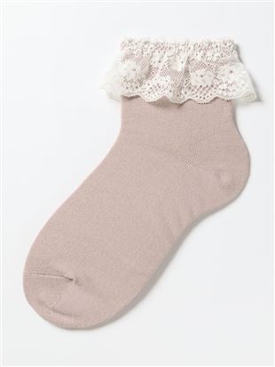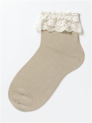 綿混レース付き平無地ソックス12cm丈