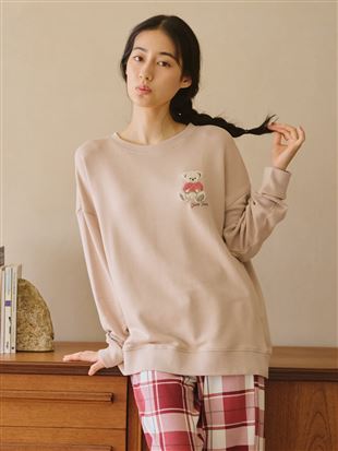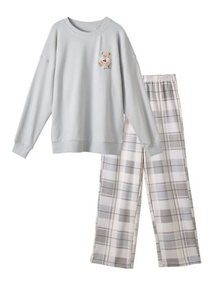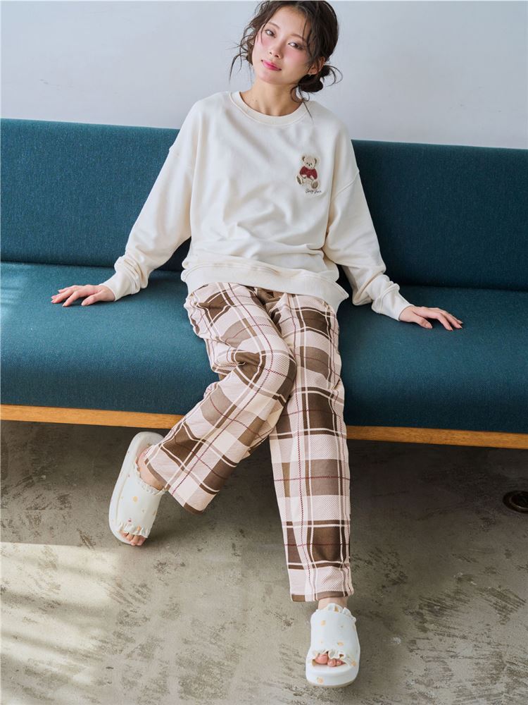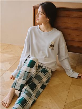 こちらのページは、[温度調整]裏毛くまサガラ刺繍チェックボトム長袖パジャマというルームウェア(部屋着)の商品詳細ページです。