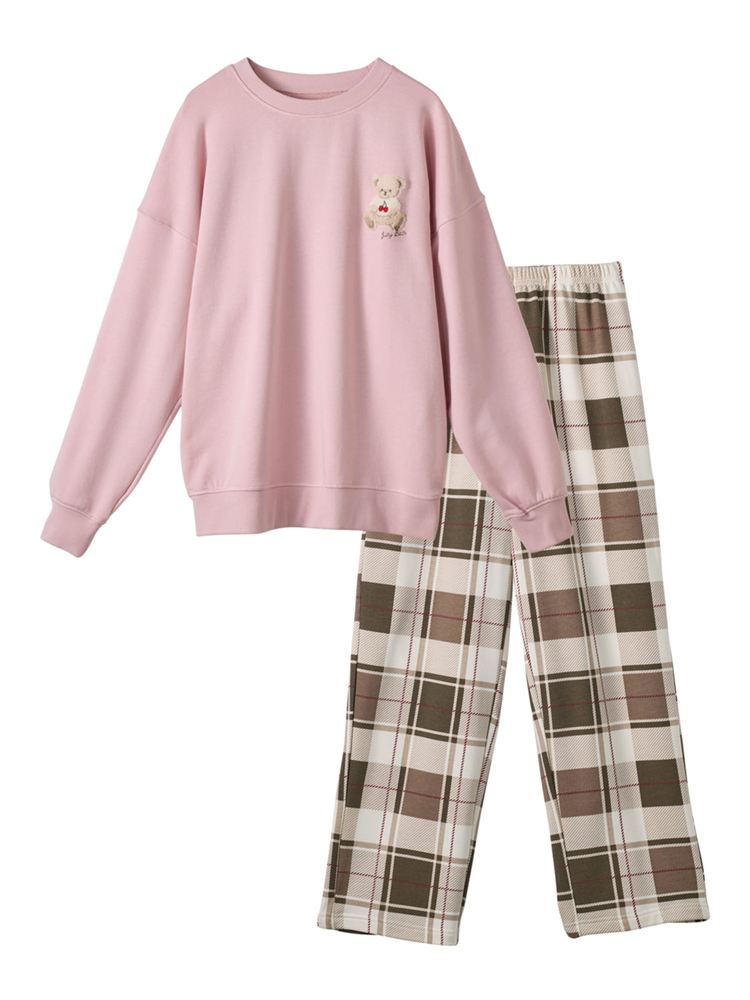 こちらのページは、[温度調整]裏毛くまサガラ刺繍チェックボトム長袖パジャマというルームウェア(部屋着)の商品詳細ページです。