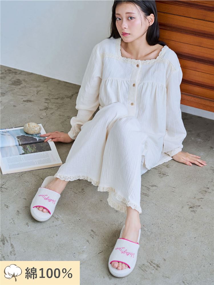 綿100%ふわっとやさしい韓国風デザインパジャマ