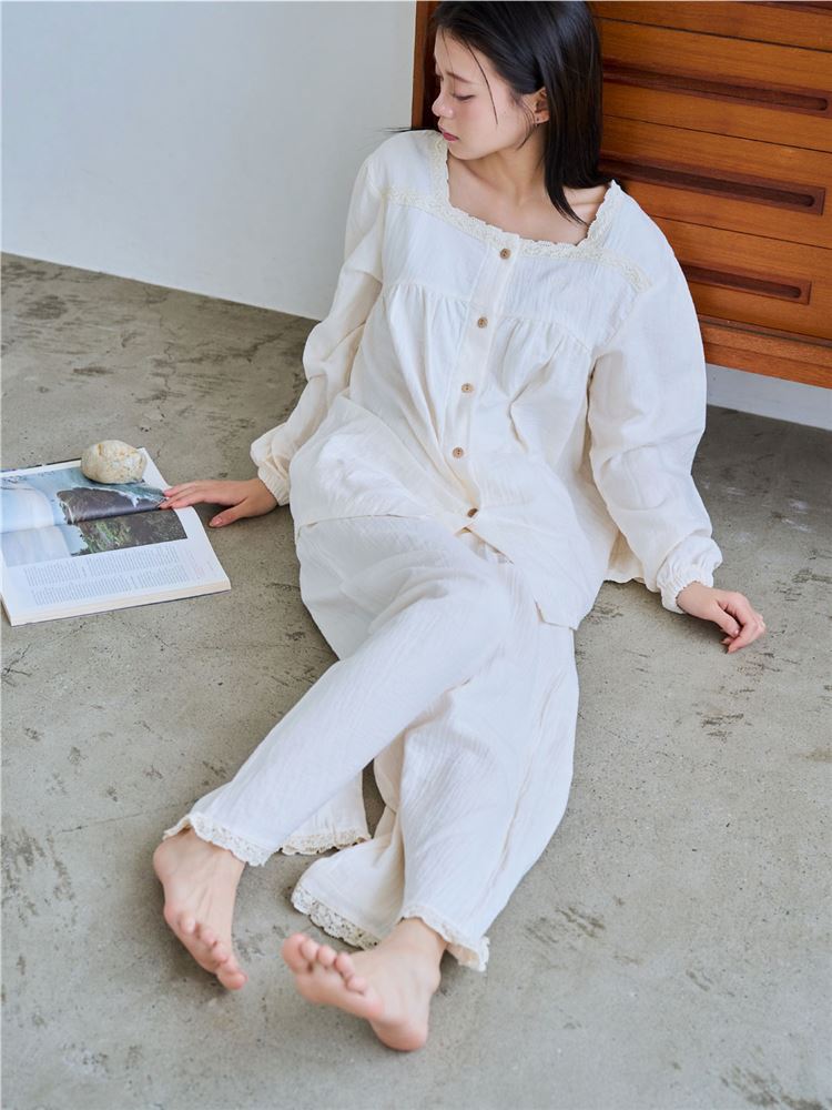 綿100%ふわっとやさしい韓国風デザインパジャマ|ルームウェア(部屋着)