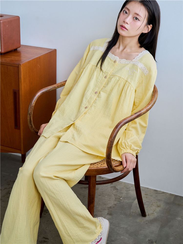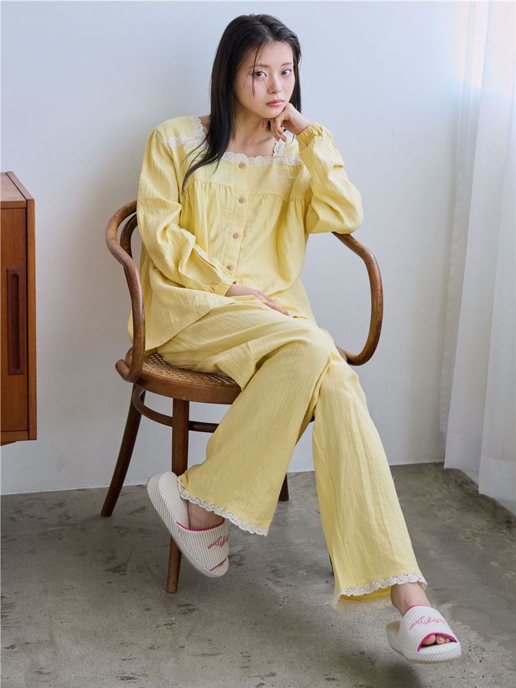 綿100%ふわっとやさしい韓国風デザインパジャマ|ルームウェア(部屋着)