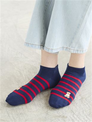 tutuannaオリジナルの商品を扱っている公式通販サイトです。 こちらのページは、綿混ボーダーくま刺繍くるぶしソックスというレッグウェアの商品詳細ページです。 他にも、多数のレッグウェアに関する商品を扱っています。