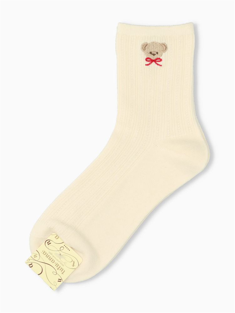 カシミヤ混縄柄くまマフラー刺繍ソックス18cm丈