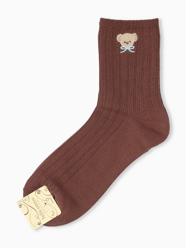 カシミヤ混縄柄くまマフラー刺繍ソックス18cm丈