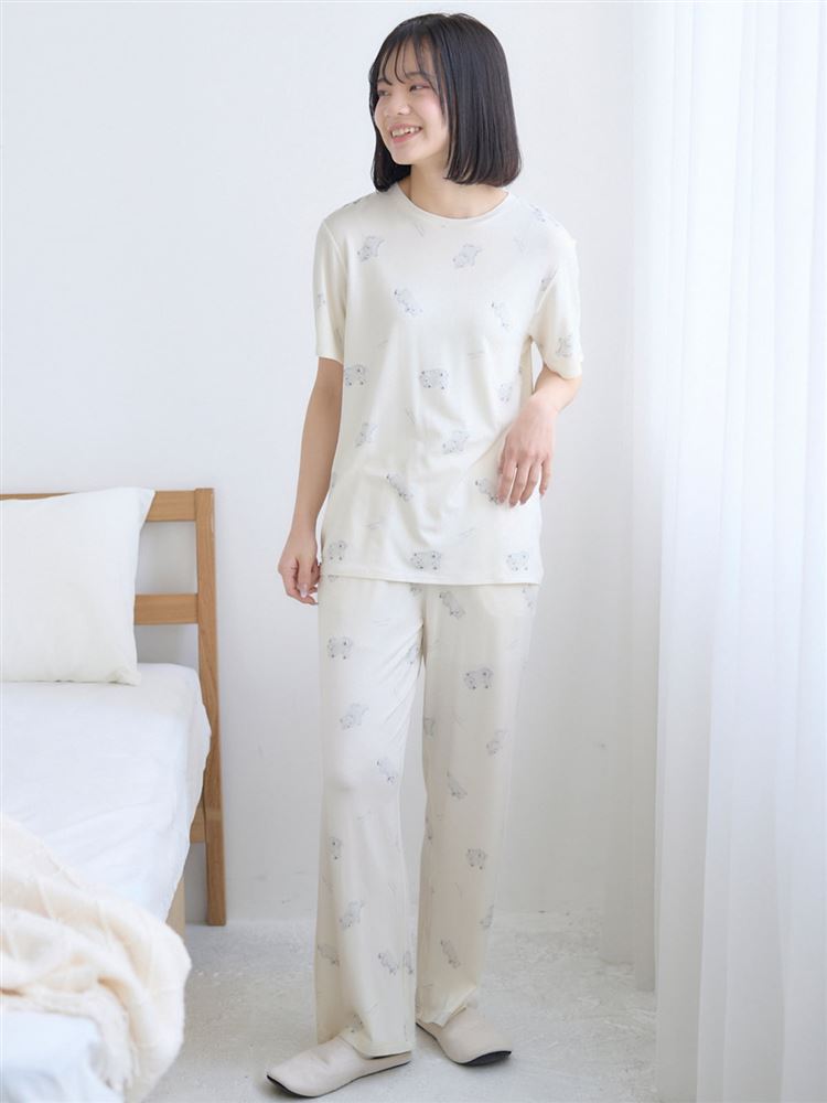レーヨン混しろくま総柄ロングパンツ|ルームウェア(部屋着)