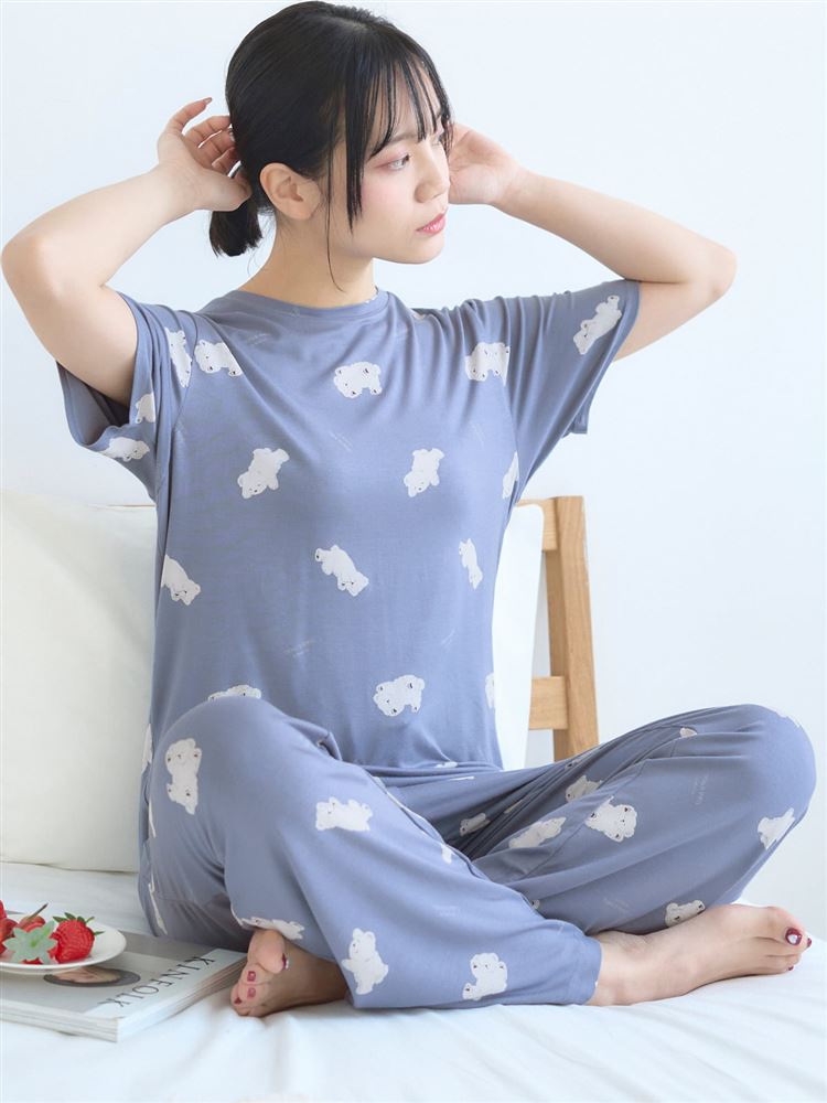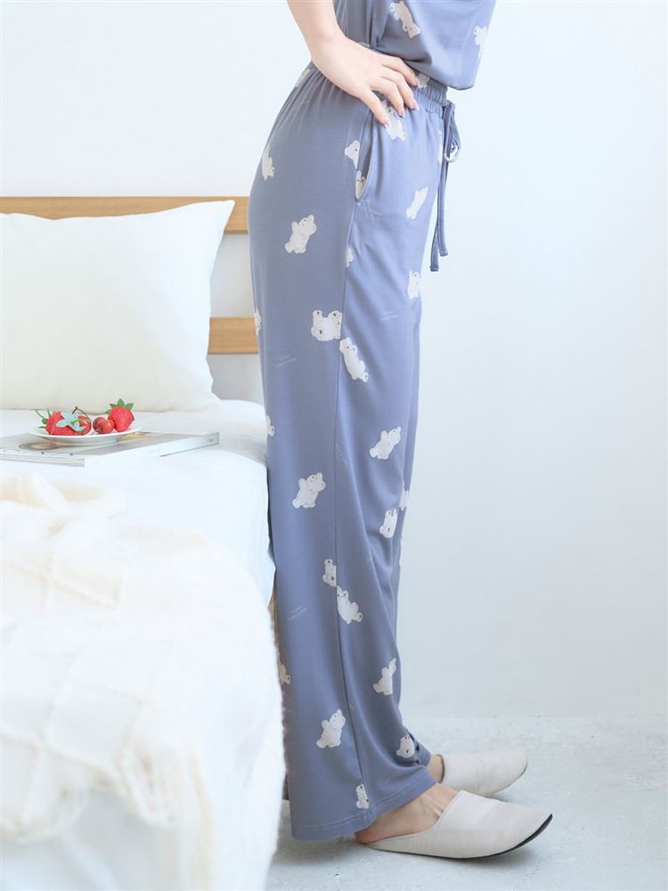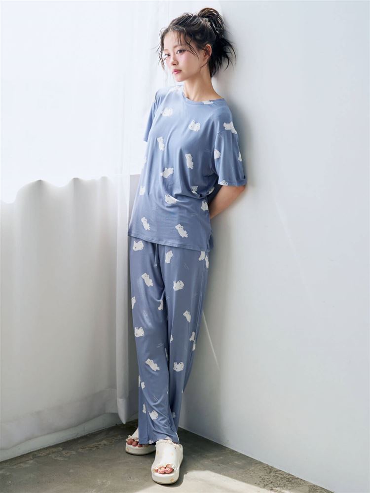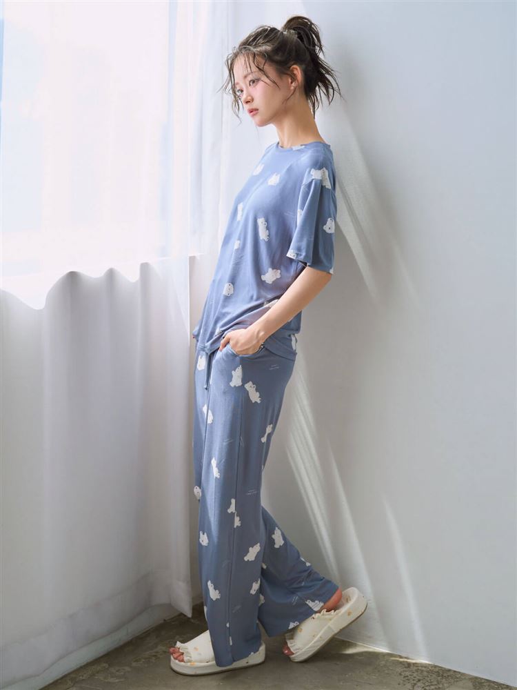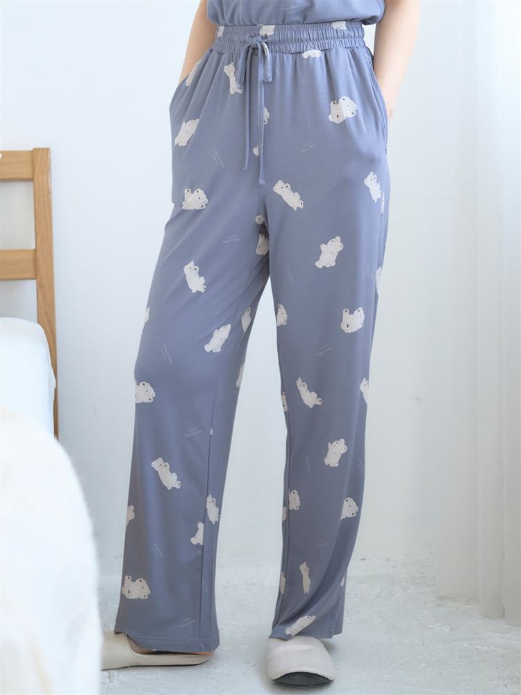 こちらのページは、レーヨン混しろくま総柄ロングパンツというルームウェア(部屋着)の商品詳細ページです。