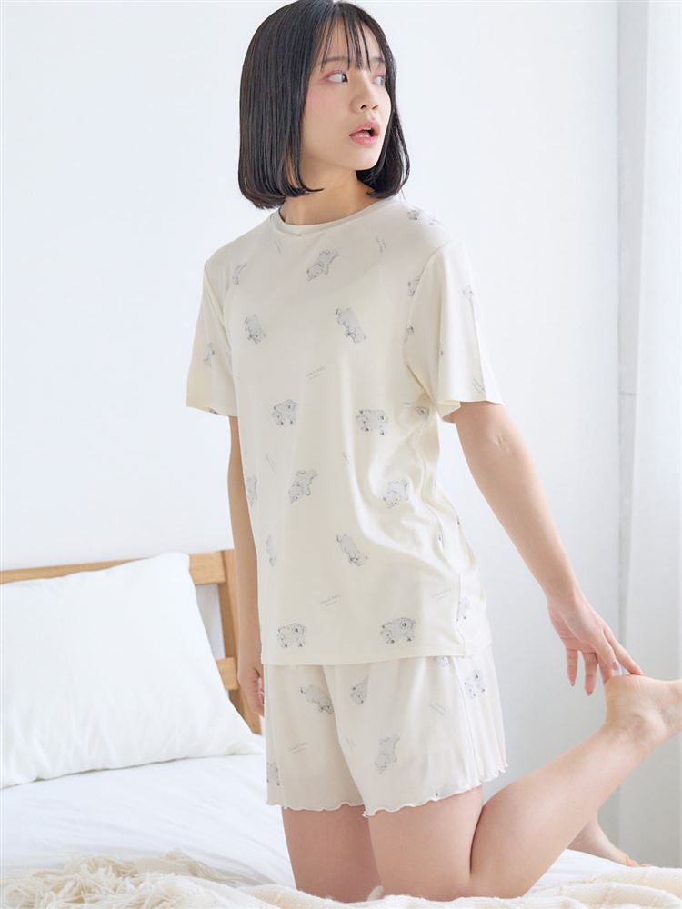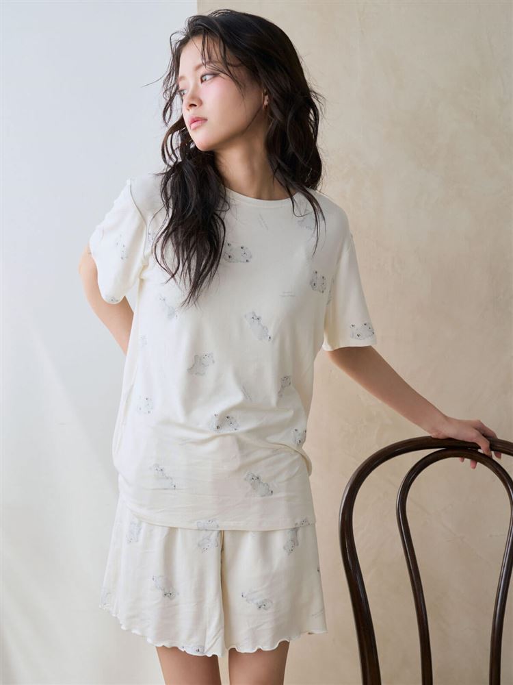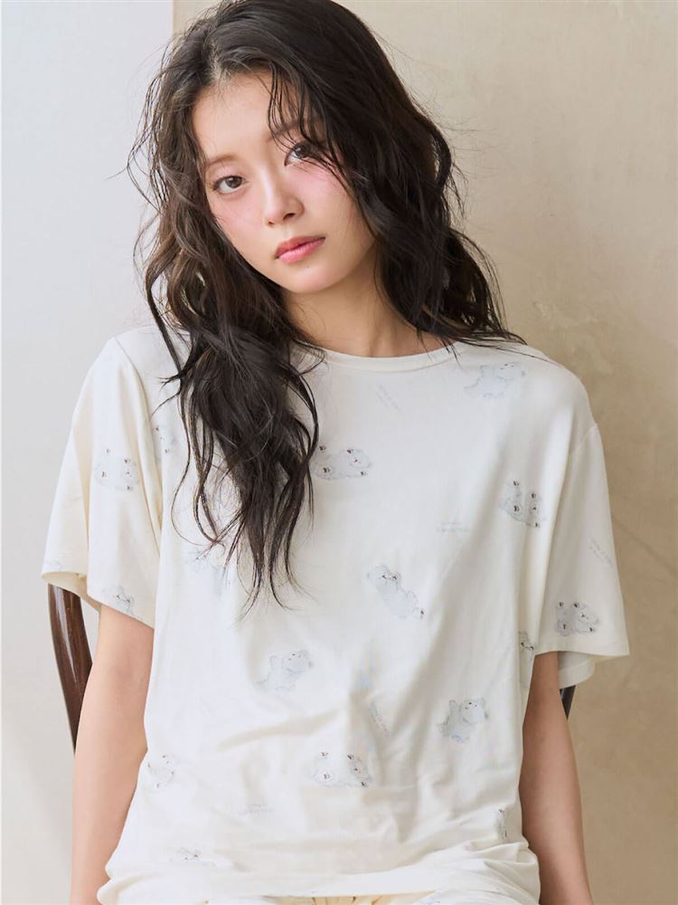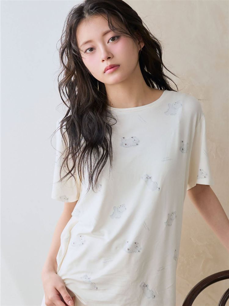 こちらのページは、レーヨン混しろくま総柄半袖Tシャツというルームウェア(部屋着)の商品詳細ページです。