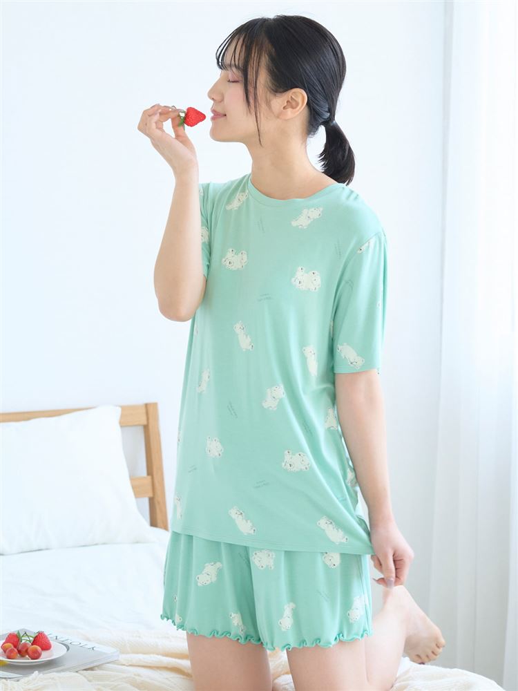こちらのページは、レーヨン混しろくま総柄半袖Tシャツというルームウェア(部屋着)の商品詳細ページです。