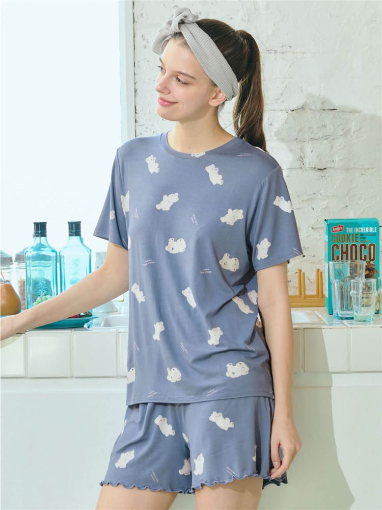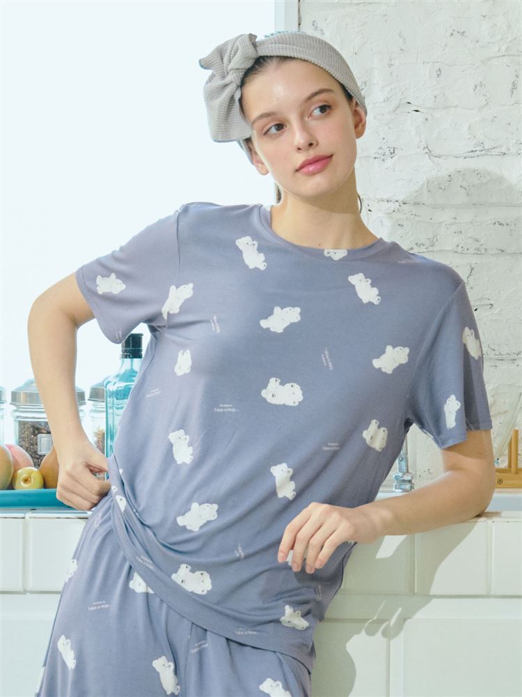 こちらのページは、レーヨン混しろくま総柄半袖Tシャツというルームウェア(部屋着)の商品詳細ページです。