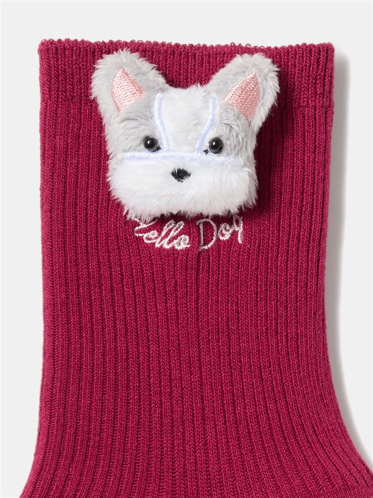 綿混ビックリボンアニマルマスコット付きソックス15cm丈