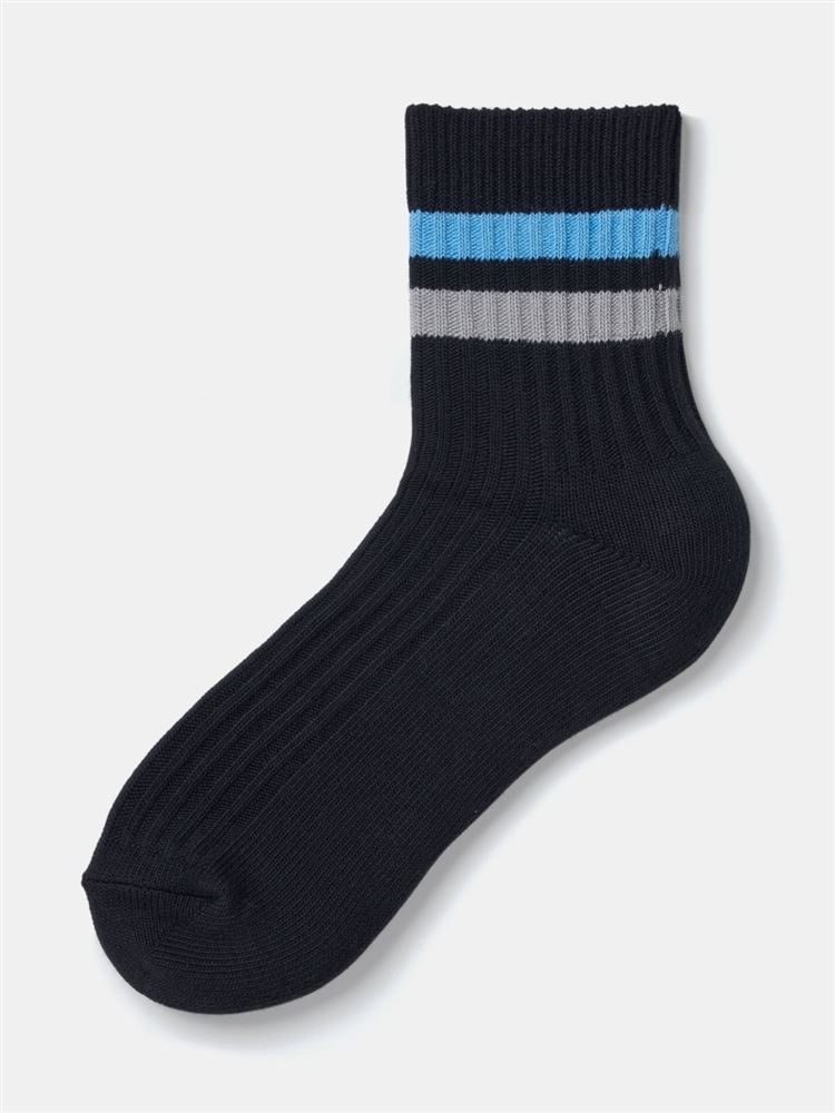 カシミヤ混マルチボーダーリブソックス18cm丈