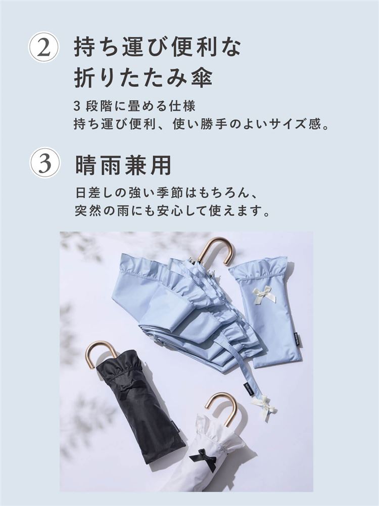 tutuannaオリジナルの商品を扱っている公式通販サイトです。 こちらのページは、[完全遮光100%]裾フリルリボン付き折り畳み日傘(晴雨兼用)というライフスタイルの商品詳細ページです。 他にも、多数のライフスタイルに関する商品を扱っています。