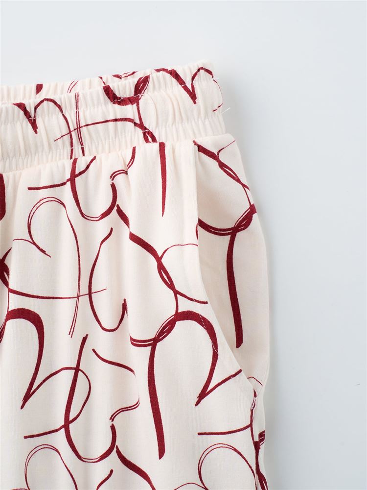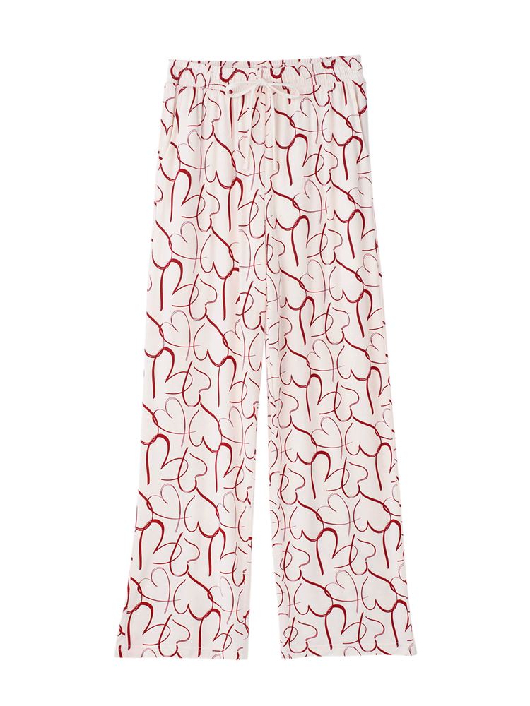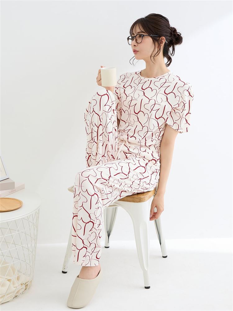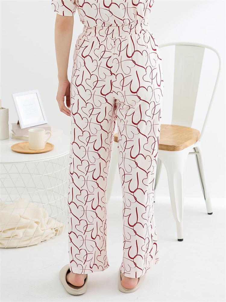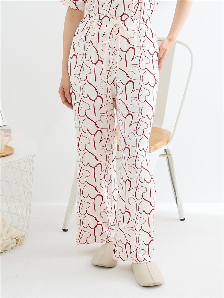 こちらのページは、レーヨン混ハート総柄ロングパンツというルームウェア(部屋着)の商品詳細ページです。