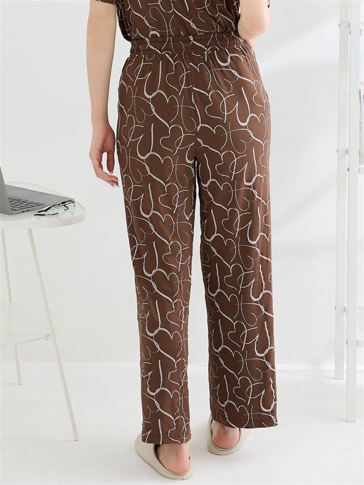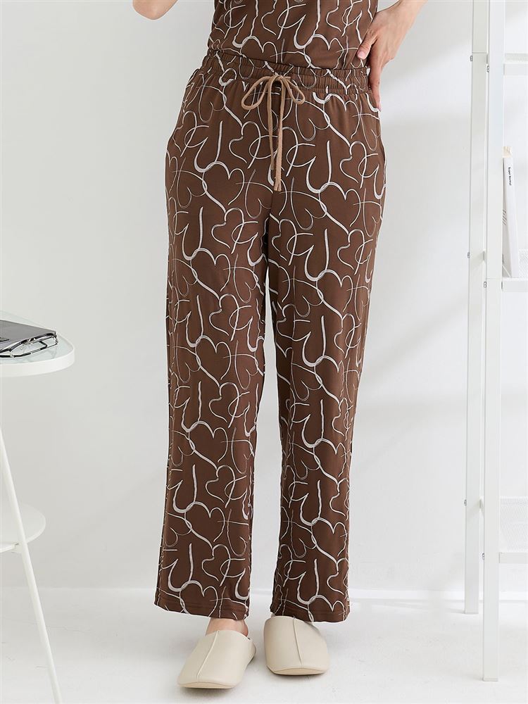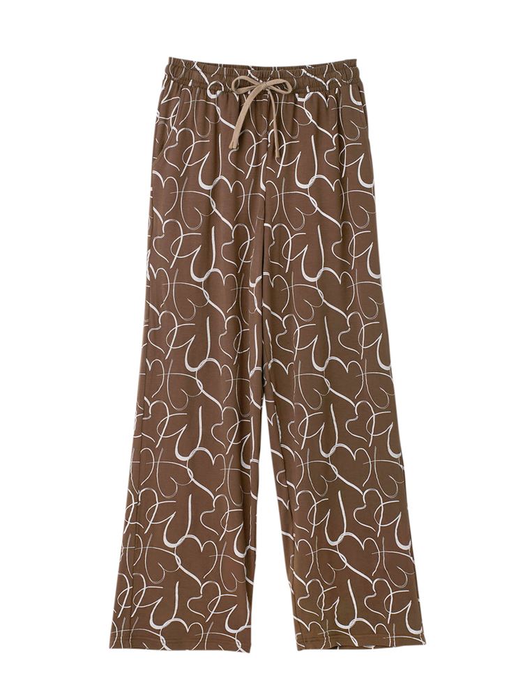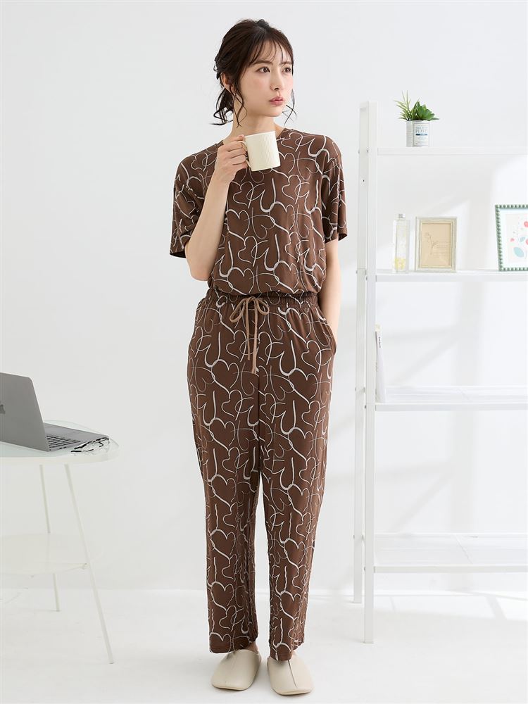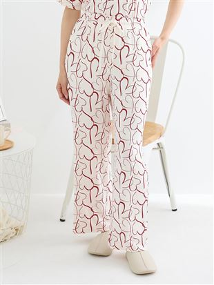 こちらのページは、レーヨン混ハート総柄ロングパンツというルームウェア(部屋着)の商品詳細ページです。