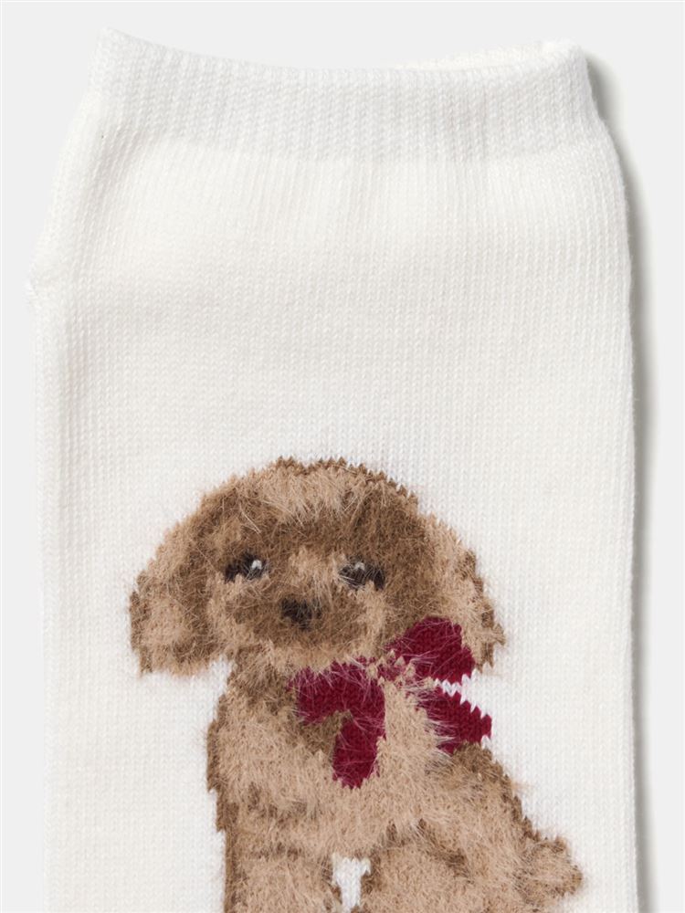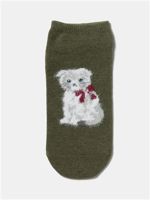 アニマルワッペン刺繍内側ボアルームソックス15cm丈