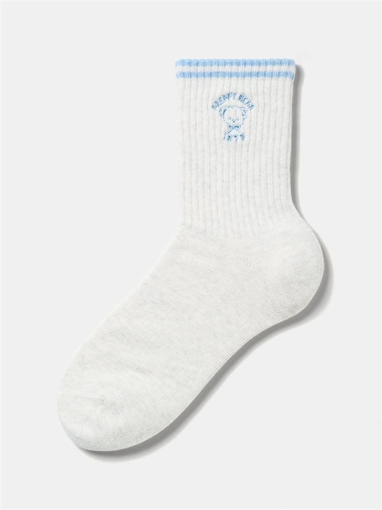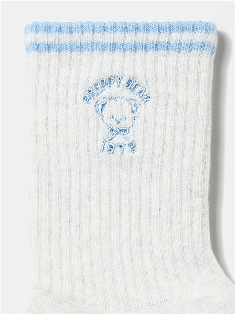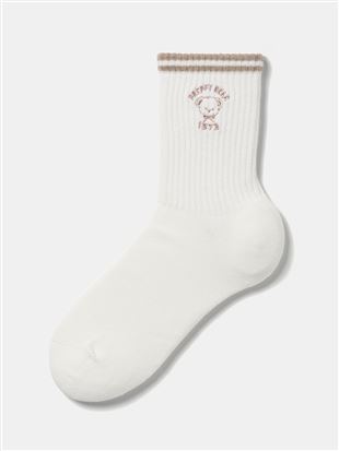 カシミヤ混縄柄くまマフラー刺繍ソックス18cm丈