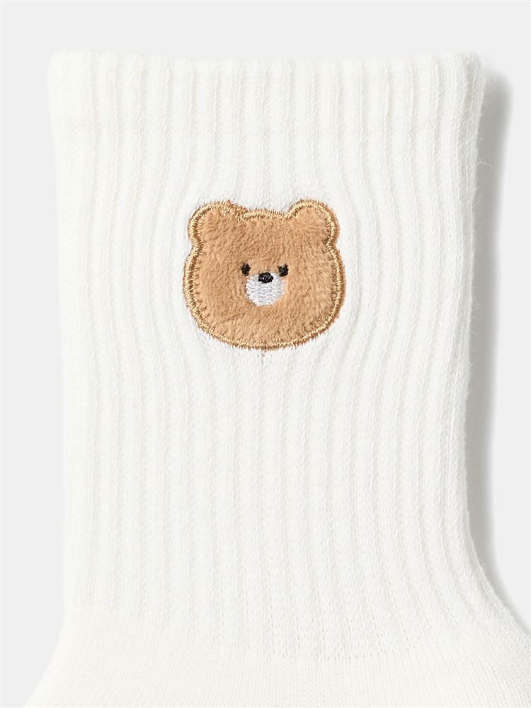 綿混くま刺繍2本ラインアメリブソックス16cm丈