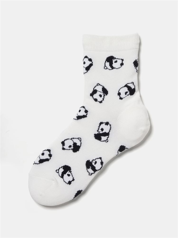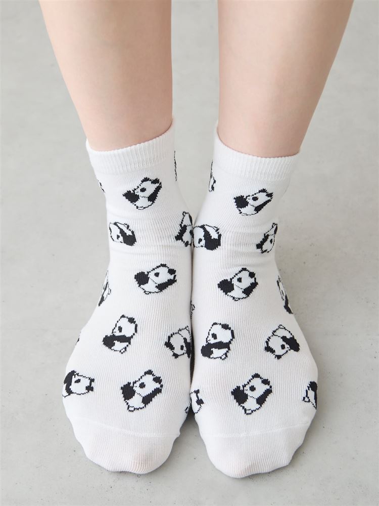 [温度調整]履き口ゆったりころころパンダ総柄ソックス15cm丈