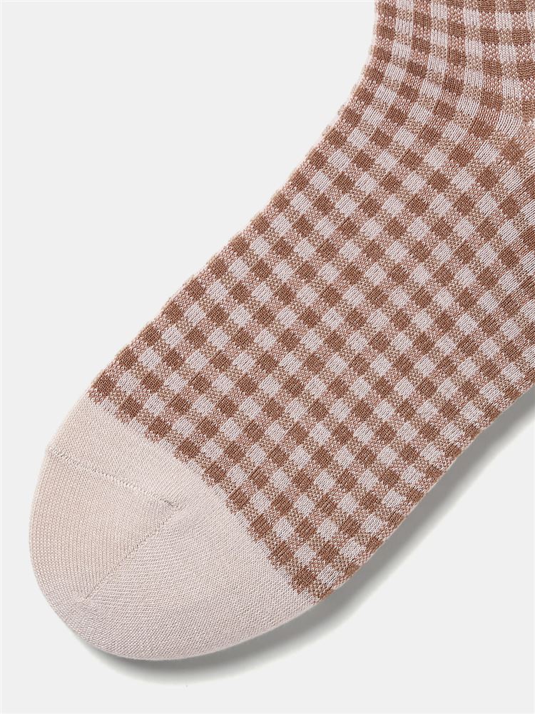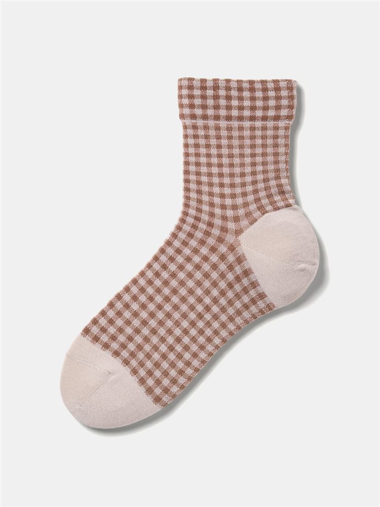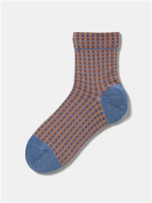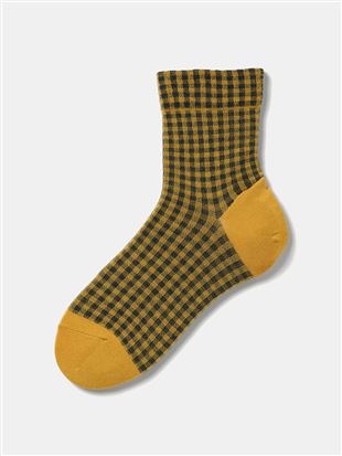 [温度調整]履き口ゆったりギンガムチェック柄ソックス15cm丈