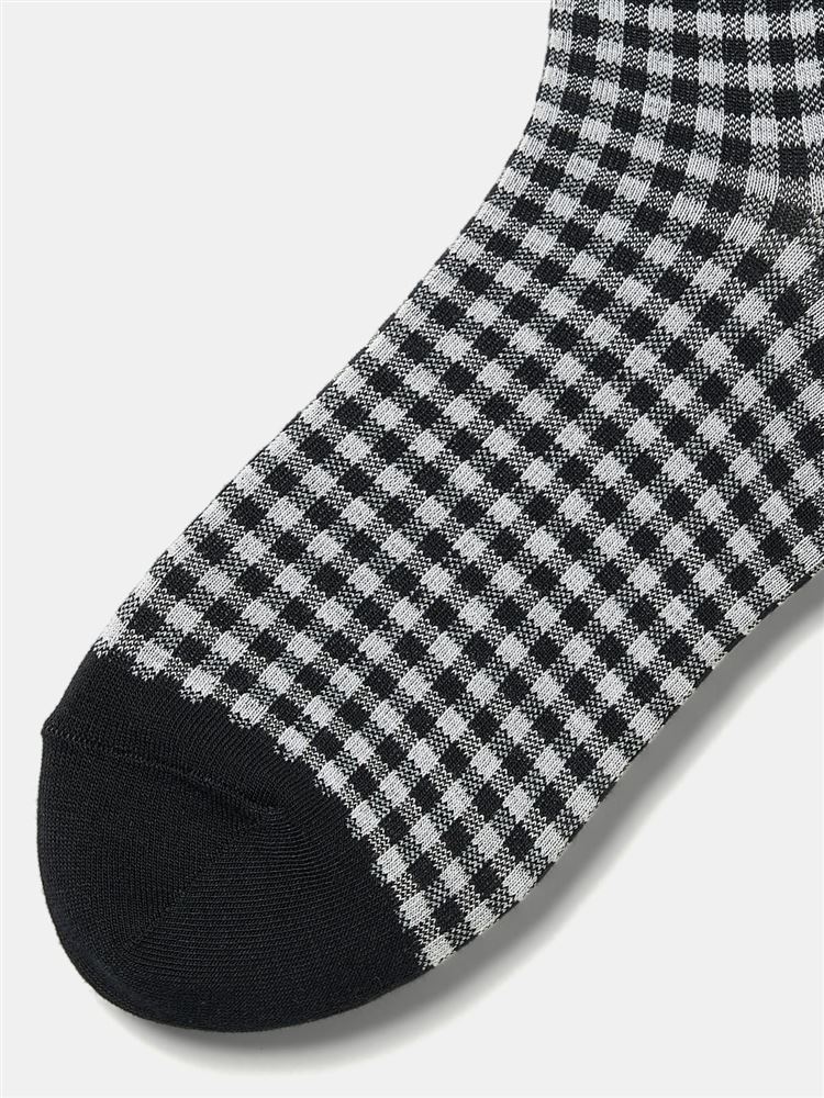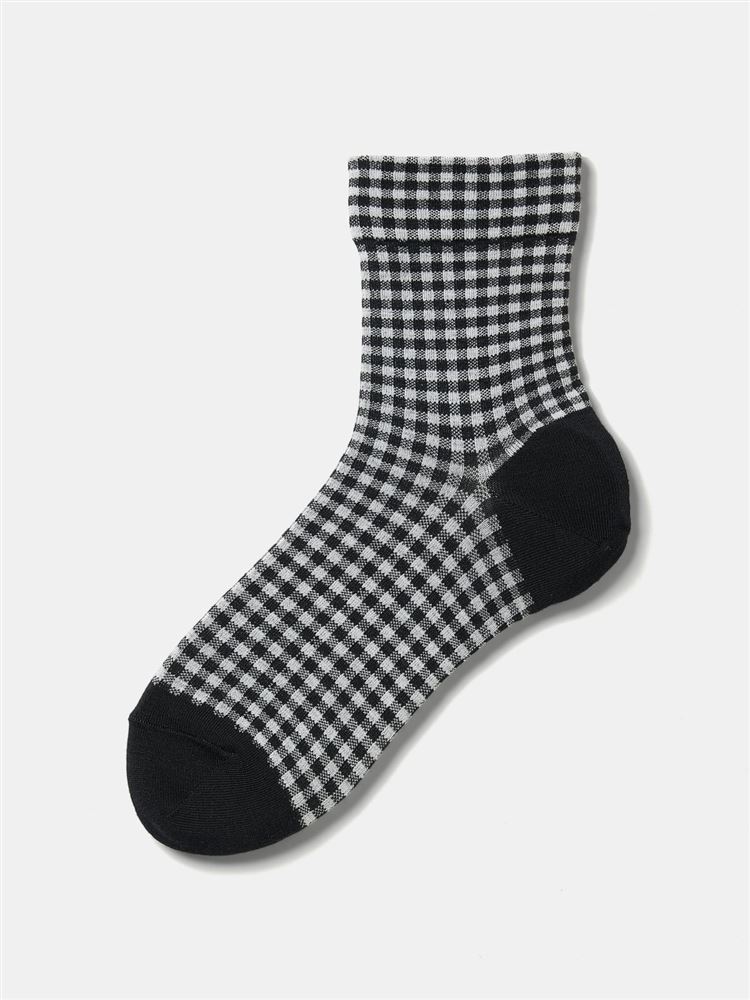 [温度調整]履き口ゆったりギンガムチェック柄ソックス15cm丈