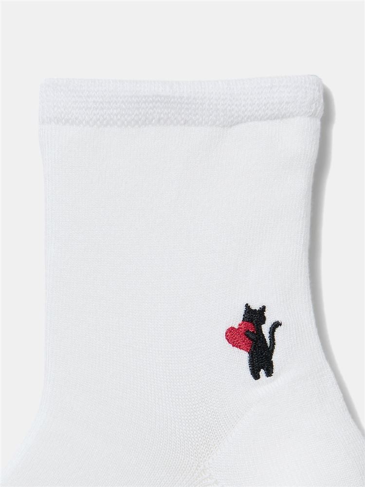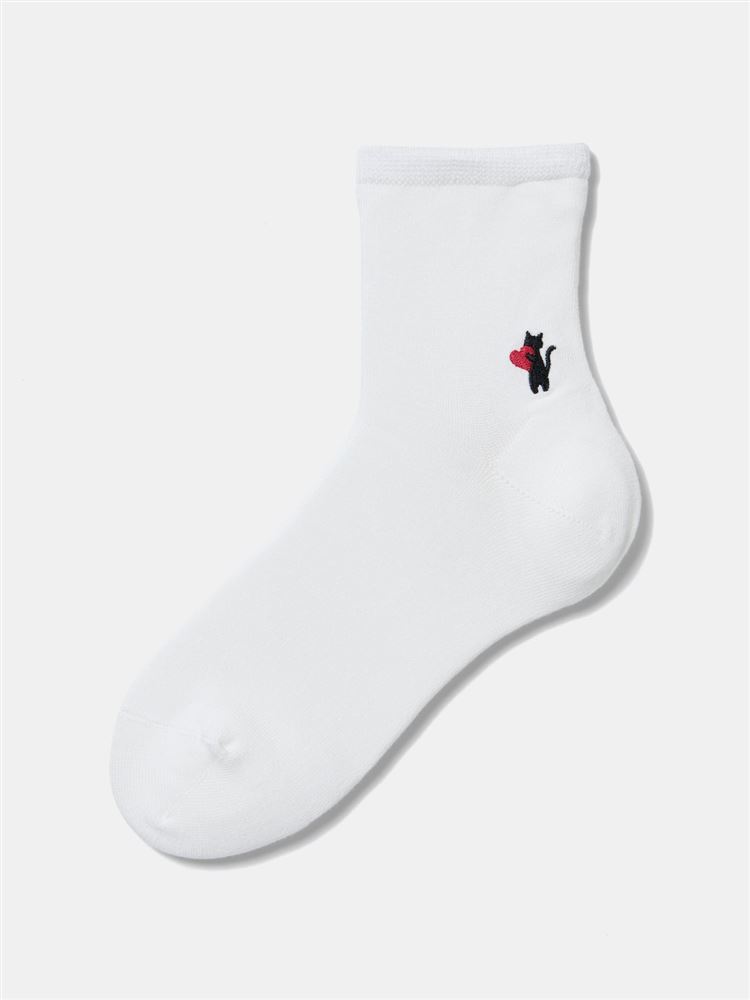 [温度調整]履き口ゆったりハート猫シルエット刺繍ソックス14cm丈