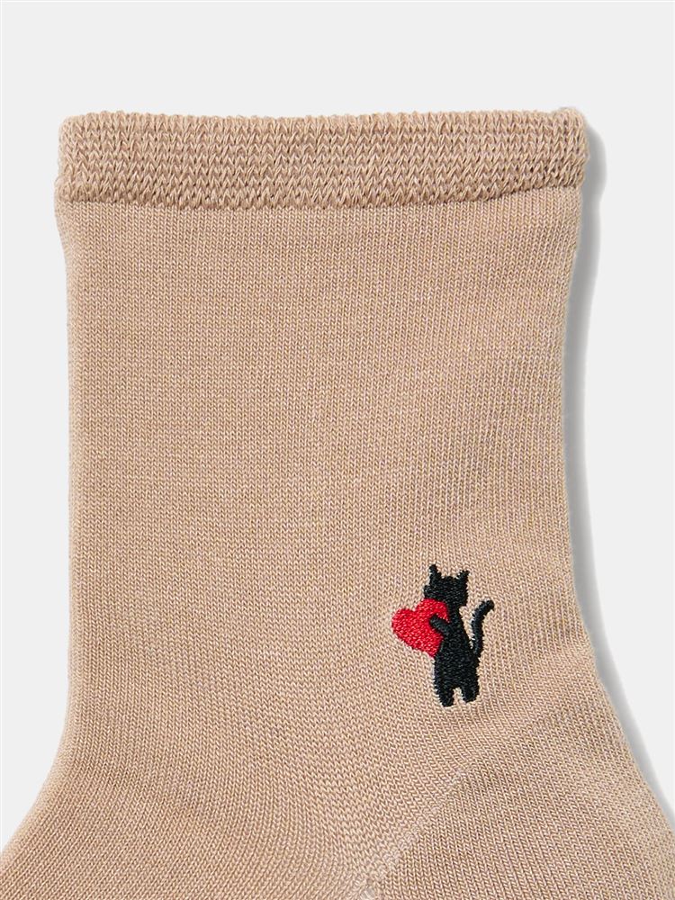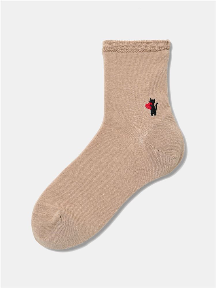 [温度調整]履き口ゆったりハート猫シルエット刺繍ソックス14cm丈