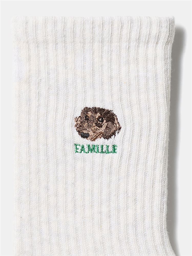 カシミヤ混ウィンタードッグ刺繍5本指ソックス16cm丈