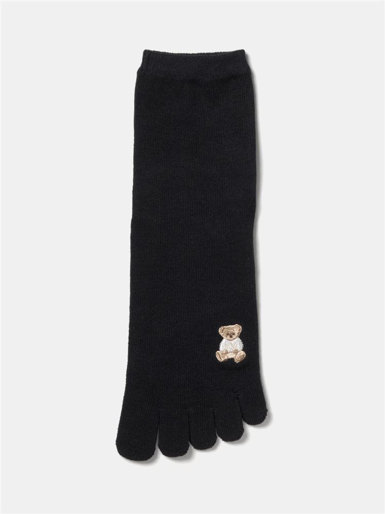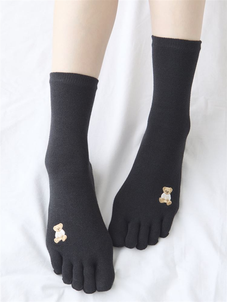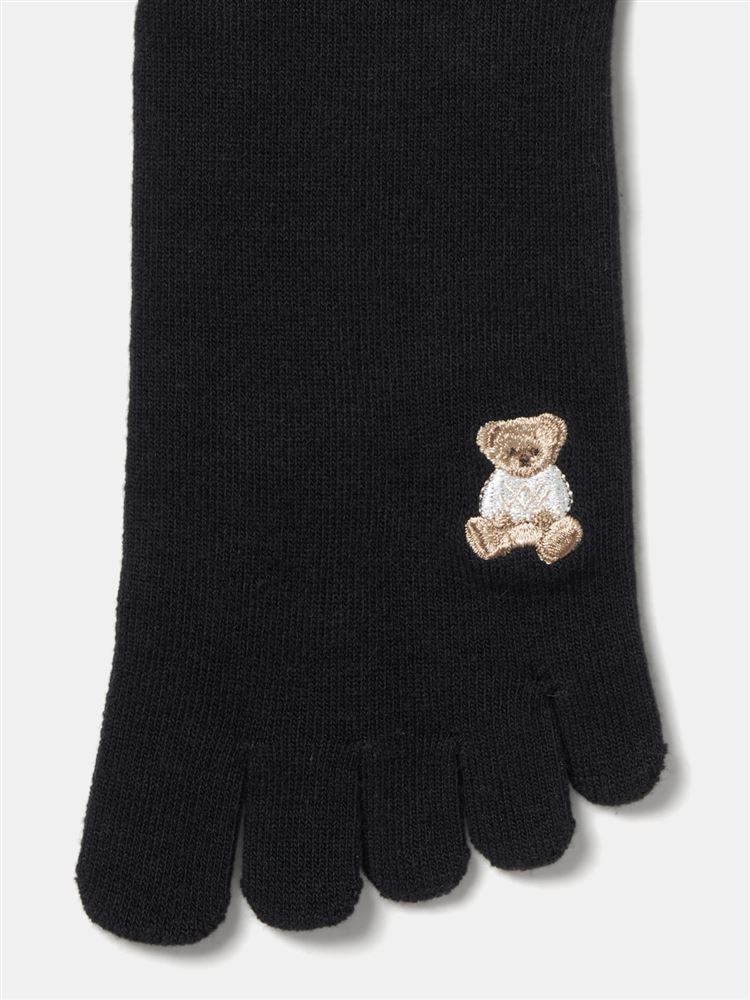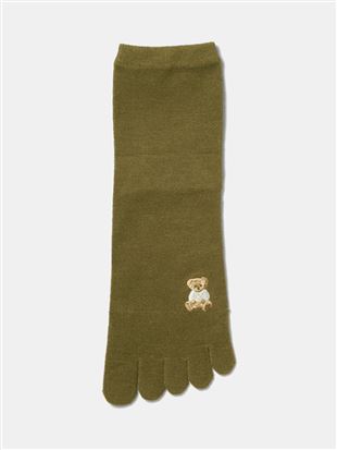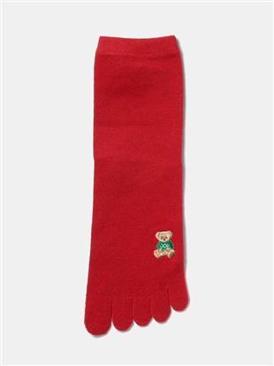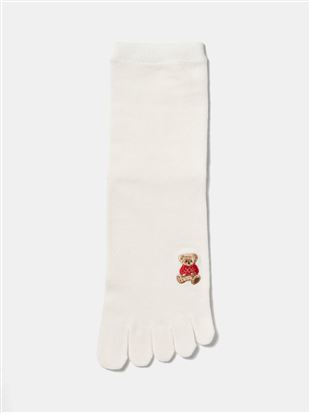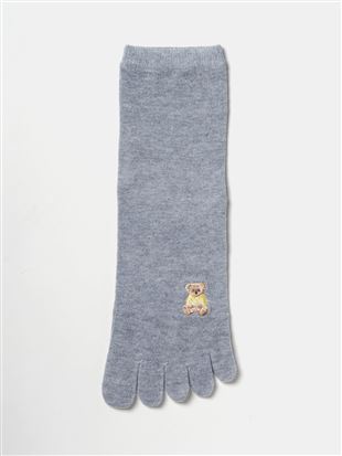 もふもふタッチフロート縄柄くま刺繍5本指ソックス16cm丈
