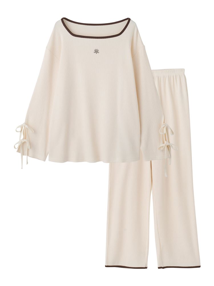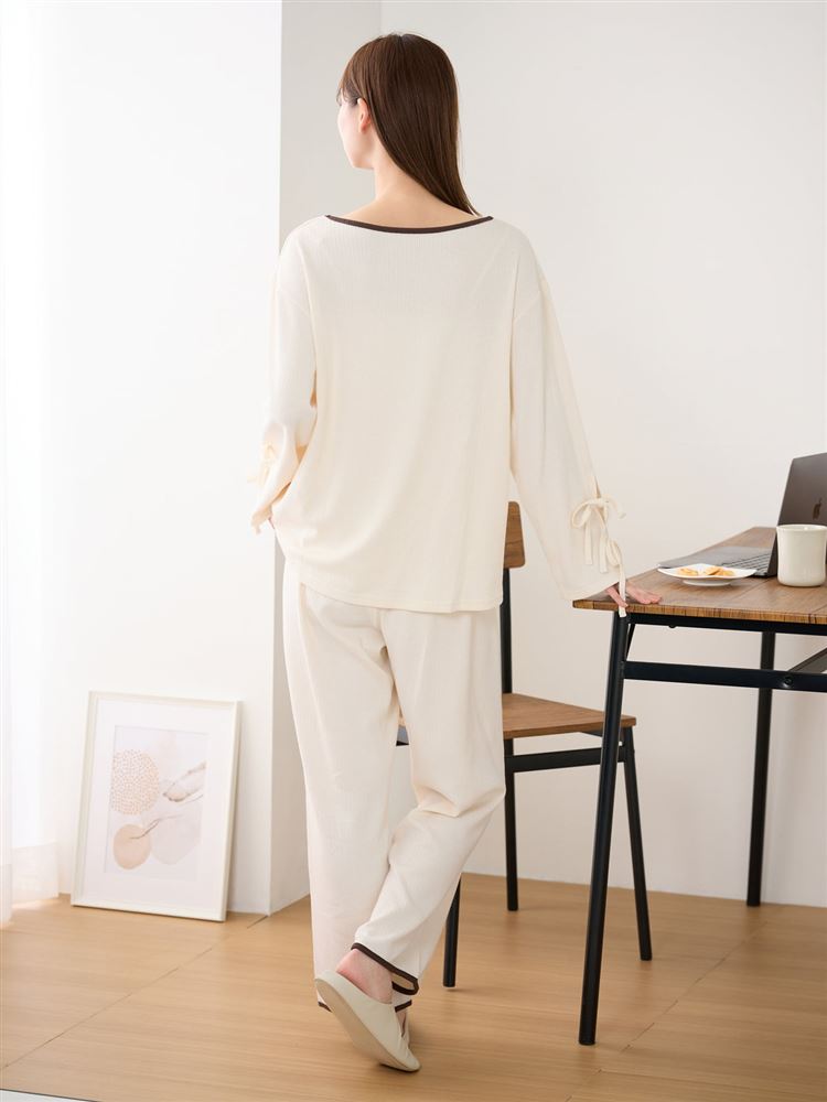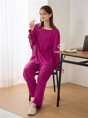 こちらのページは、[温度調整]胸元センター刺繍袖リボンパジャマというルームウェア(部屋着)の商品詳細ページです。