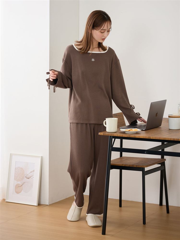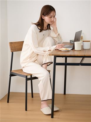 こちらのページは、[温度調整]胸元センター刺繍袖リボンパジャマというルームウェア(部屋着)の商品詳細ページです。