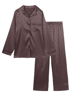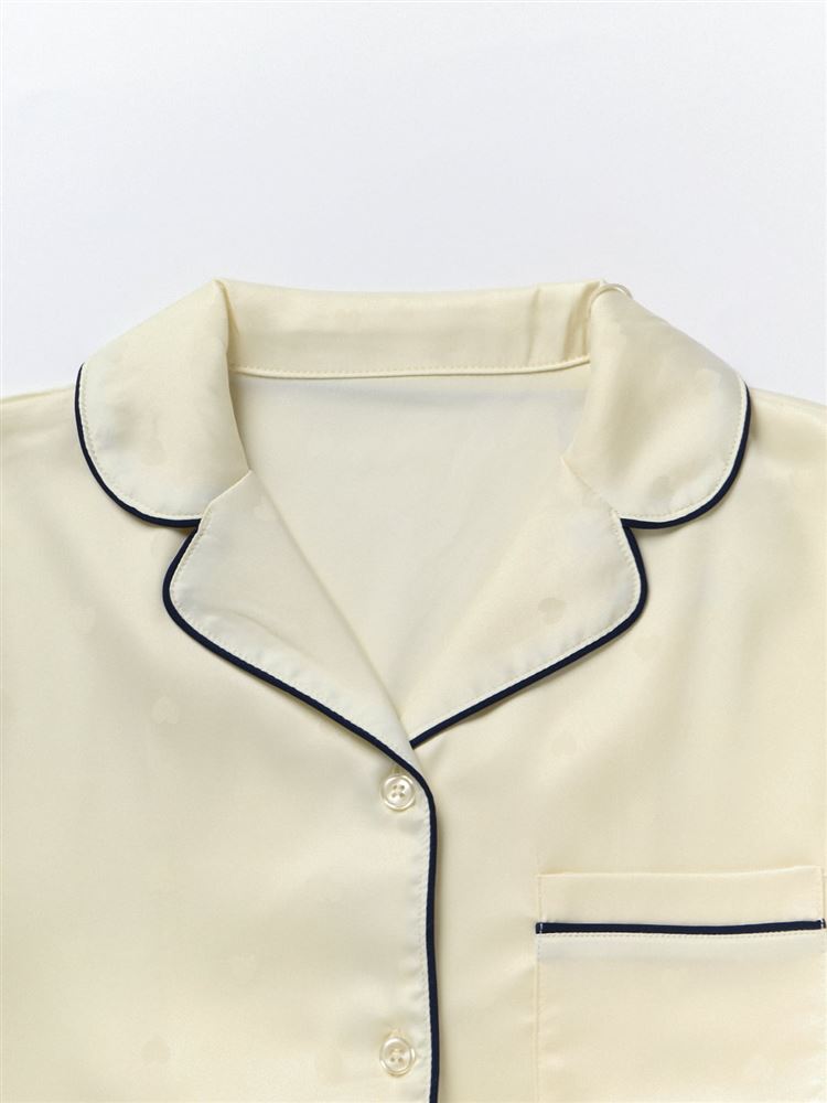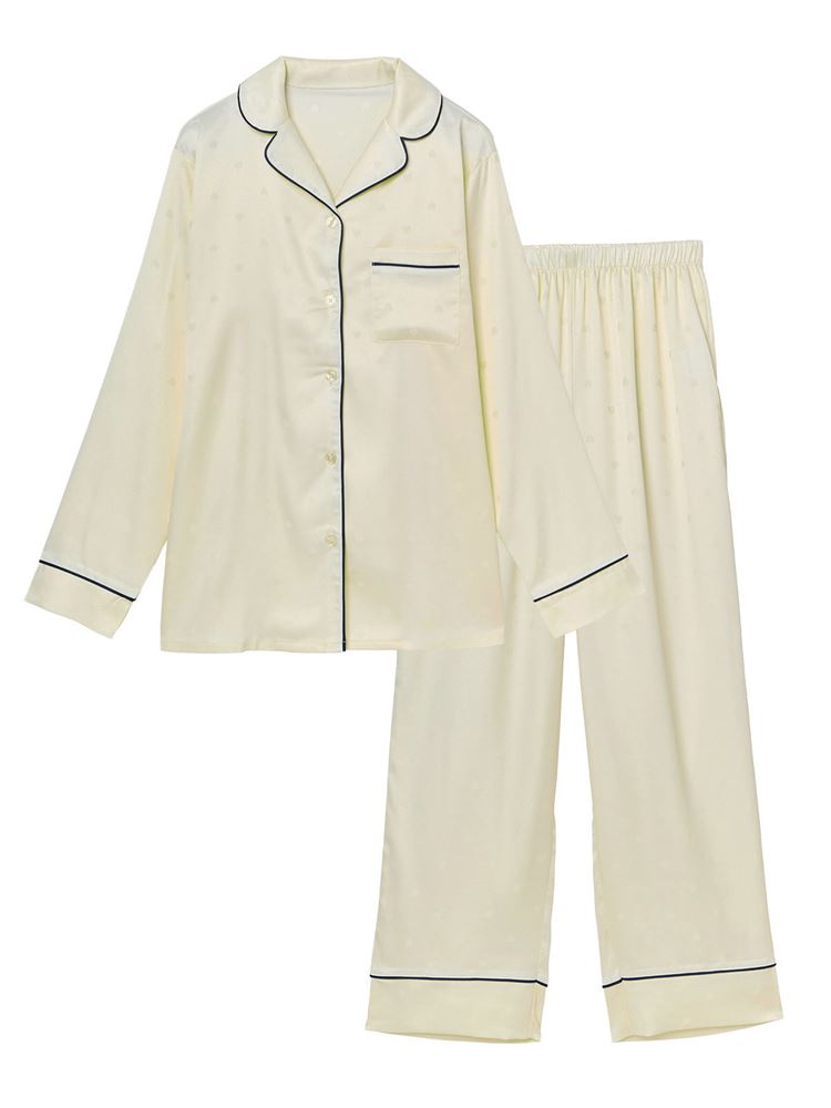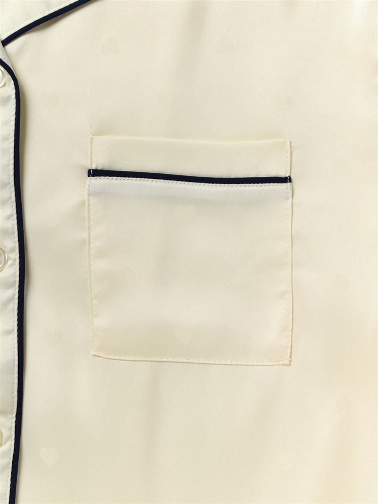 こちらのページは、ジャガードハート柄前開きサテン長袖パジャマというルームウェア(部屋着)の商品詳細ページです。