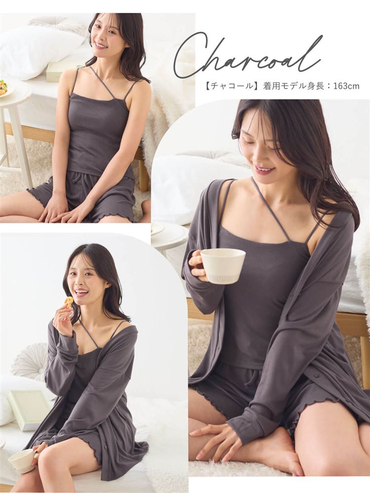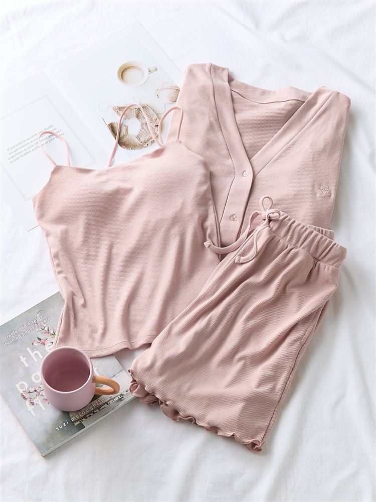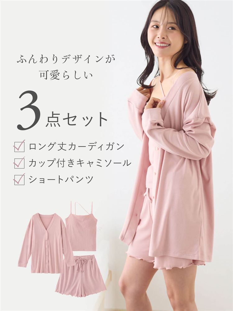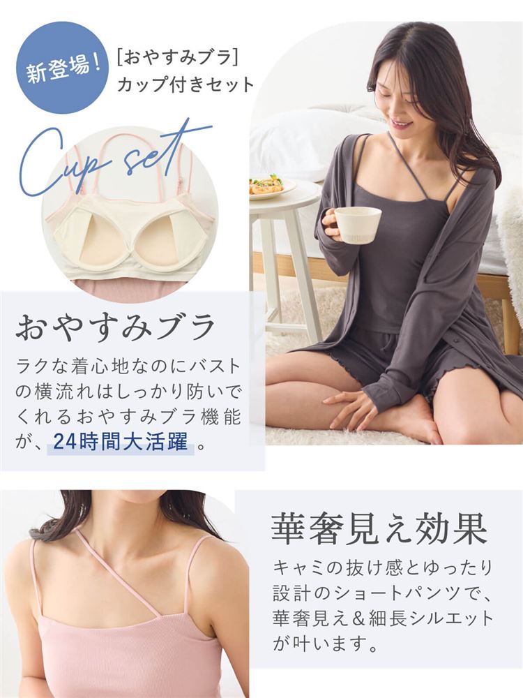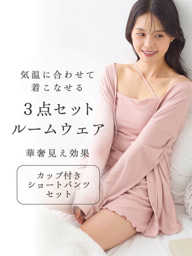 こちらのページは、ショートパンツ カップ付きルームウェア3点セットというルームウェア(部屋着)の商品詳細ページです。