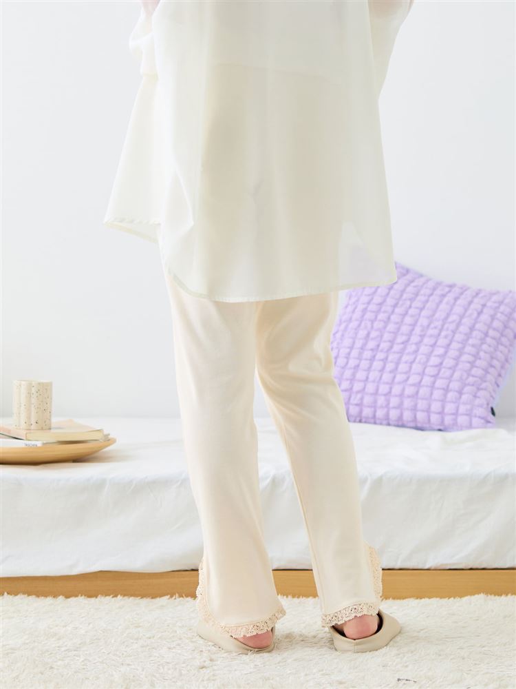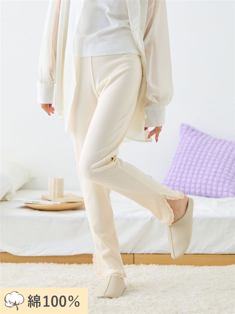 こちらのページは、綿100%スムース裾フリルレギンスというルームウェア(部屋着)の商品詳細ページです。