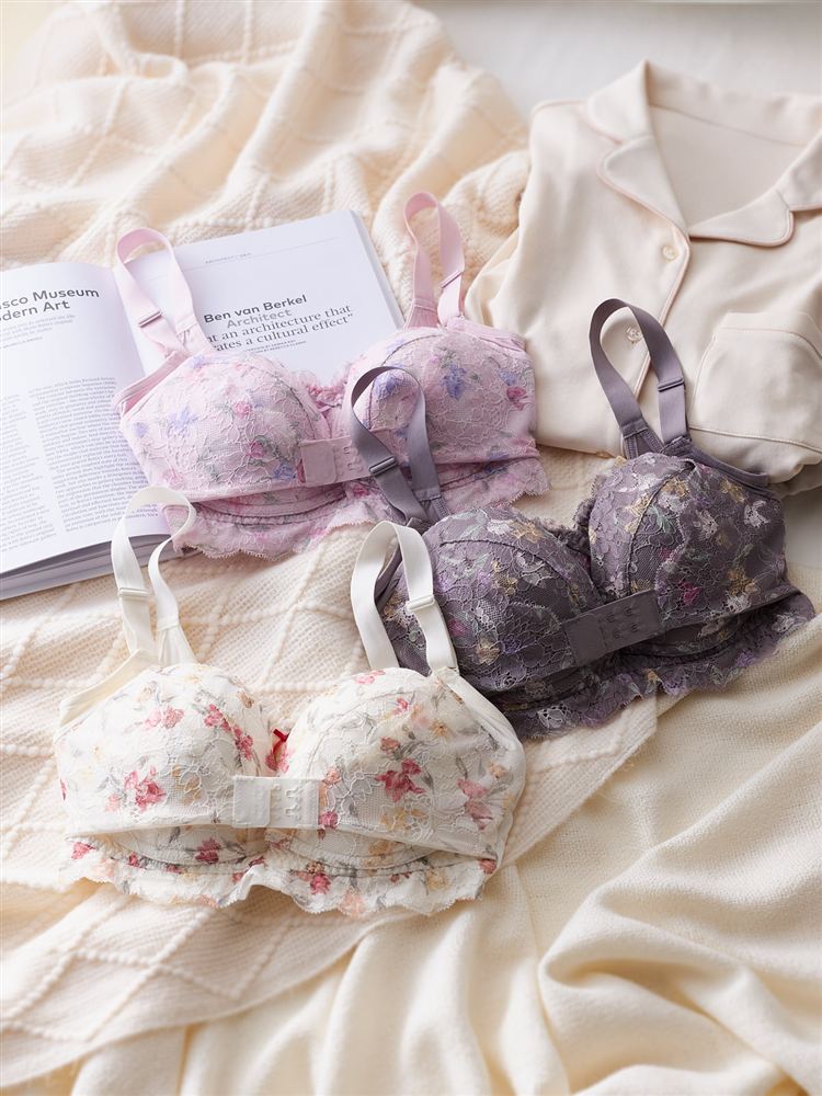 [おやすみブラ]しっかり美胸ホールド(プリント花柄レース)