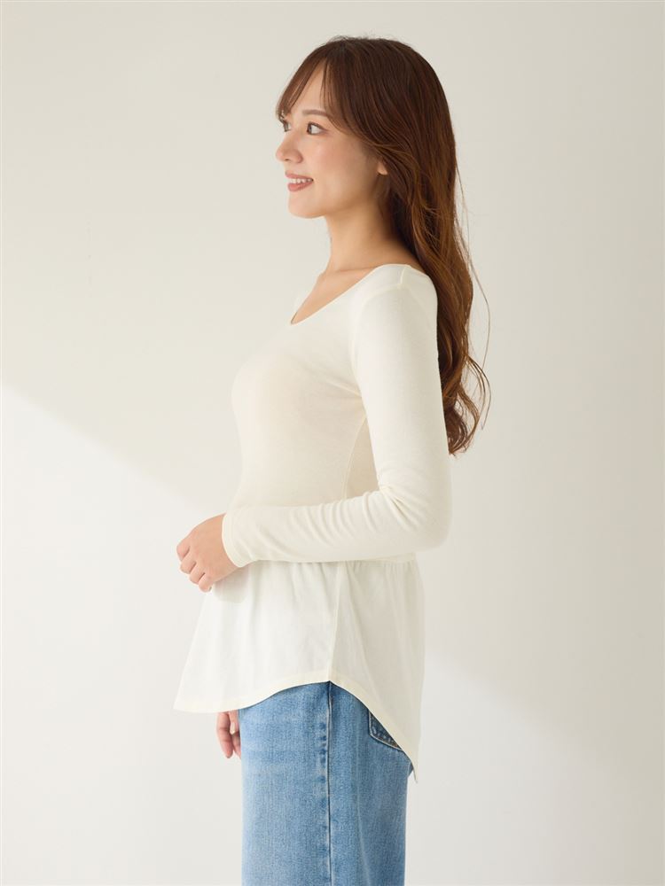 [まるで毛布!のような暖かさ・綿]深Uネック8分袖