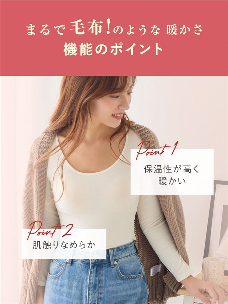 [まるで毛布!のような暖かさ・綿]深Uネック8分袖