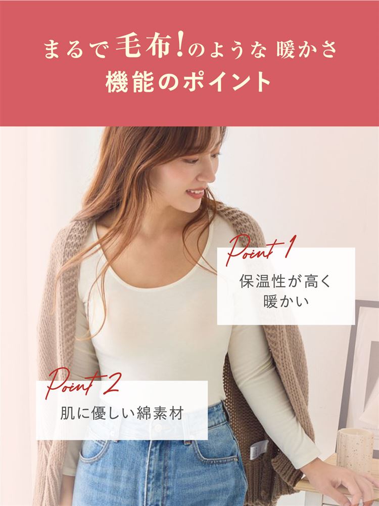 [まるで毛布!のような暖かさ・綿]深Uネック8分袖