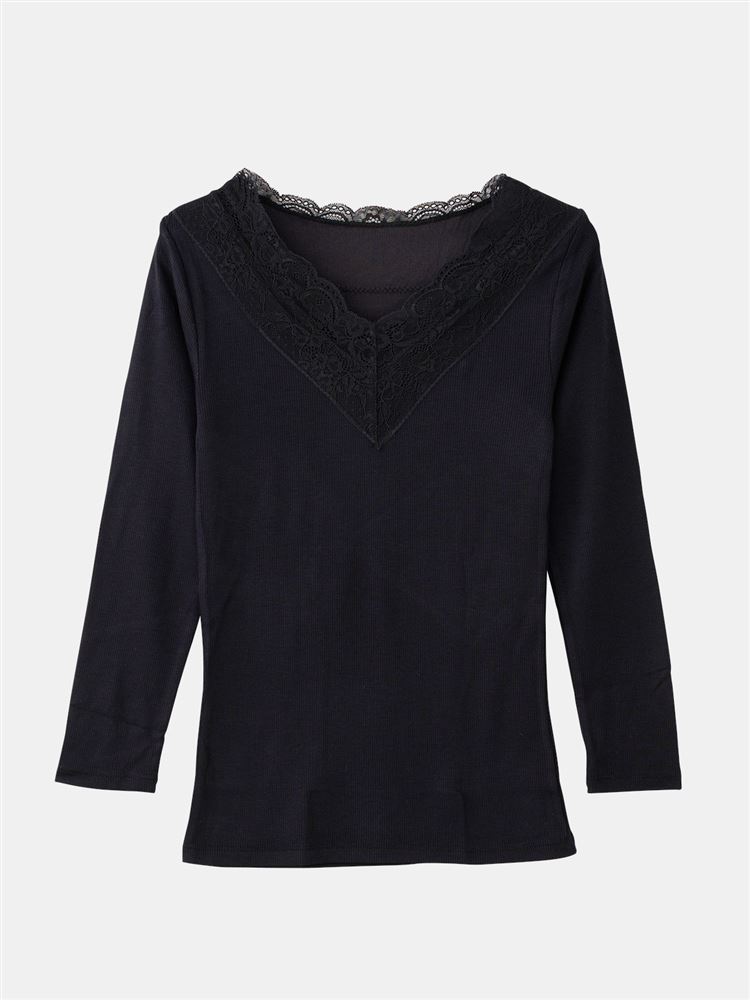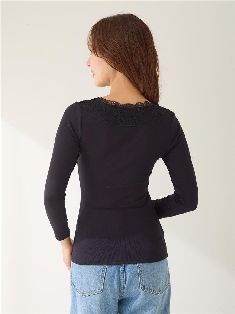 [まるで毛布!のような暖かさ・超厚手]レース付き丸首長袖