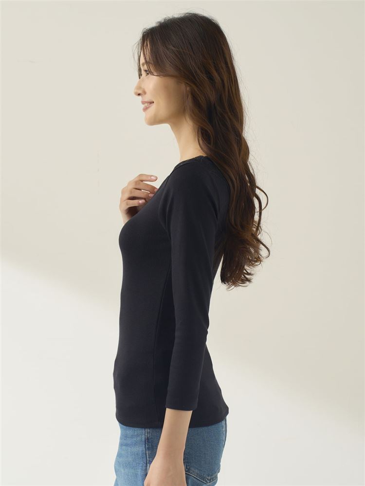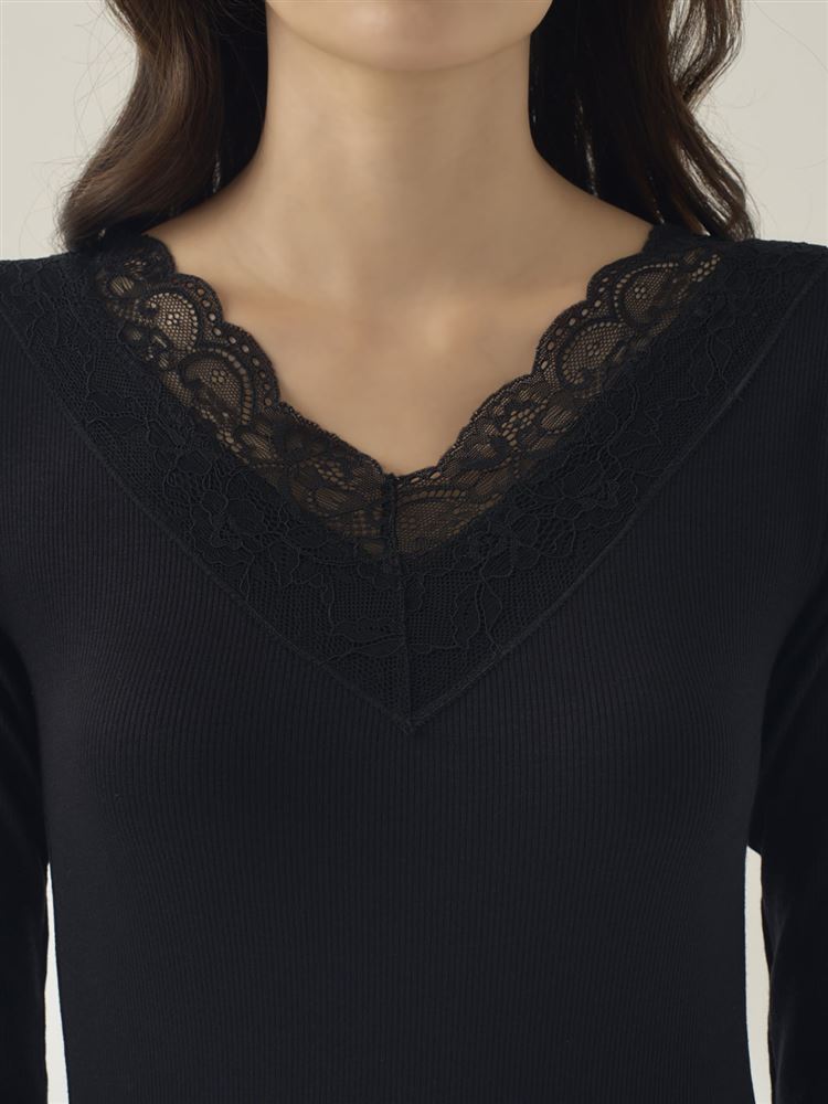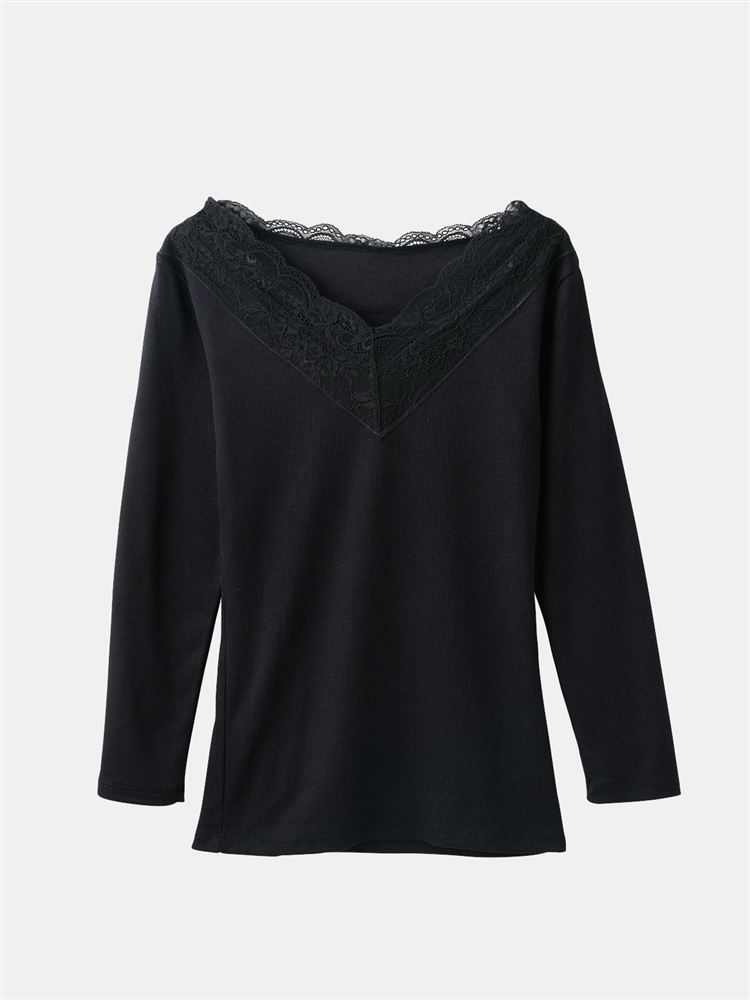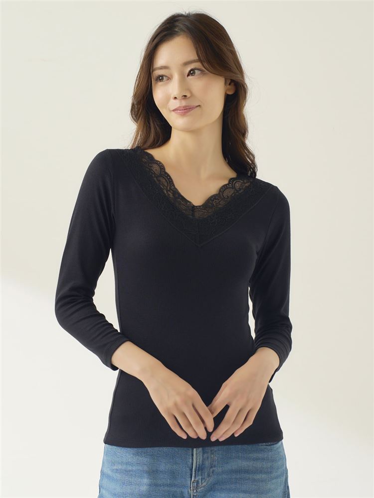 [まるで毛布!のような暖かさ・超厚手]レース付き丸首長袖