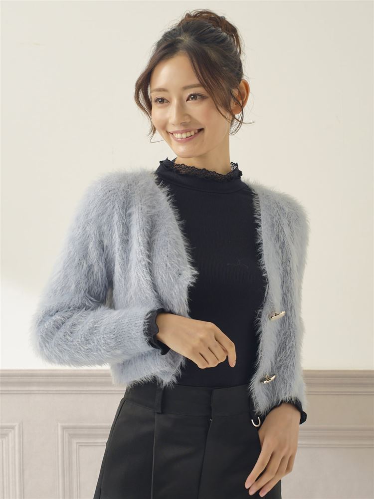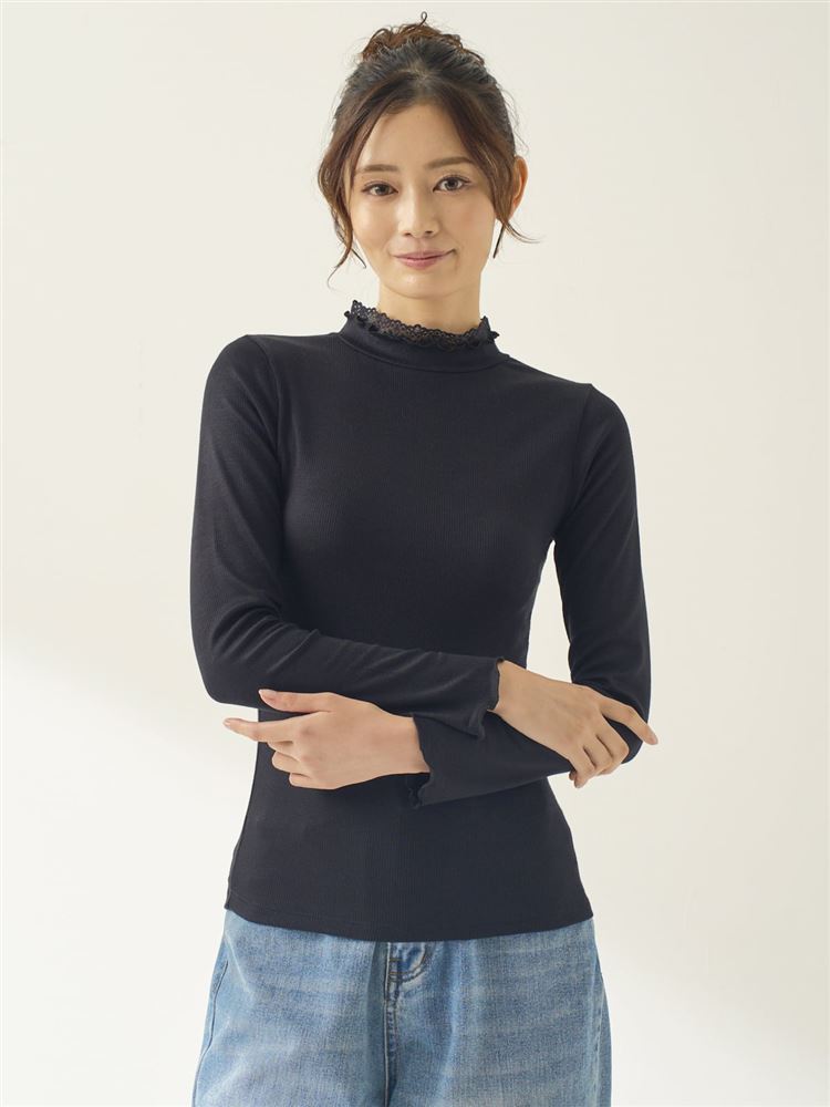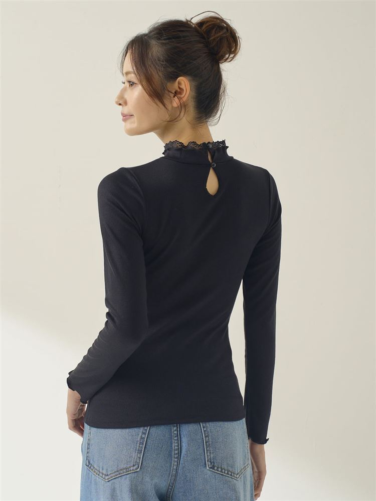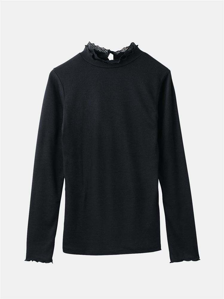 [まるで毛布!のような暖かさ・厚手]リブ首元メローハイネックレース付き長袖
