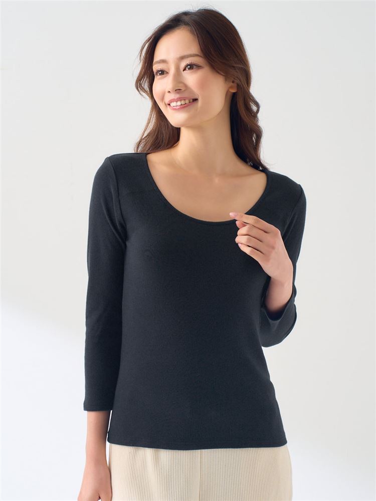 [まるで毛布!のような暖かさ・綿]深Uネック8分袖