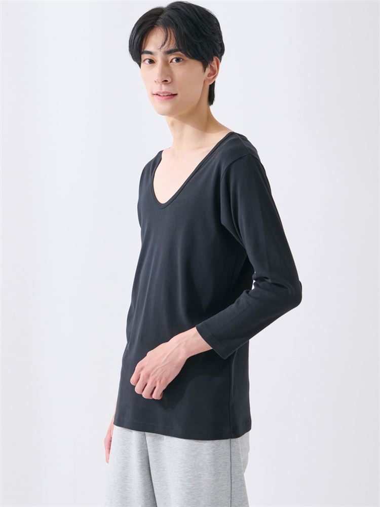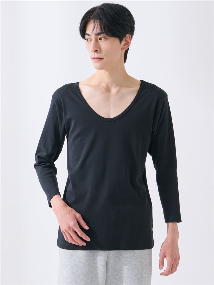 [まるで毛布!のような暖かさ・綿]深Uネック8分袖