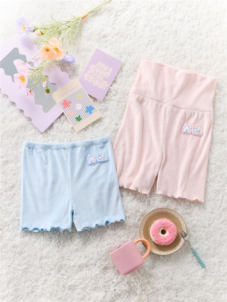 [まるで毛布!のような暖かさ・薄手]ベロアマルチーズ刺繍1分丈パンツ