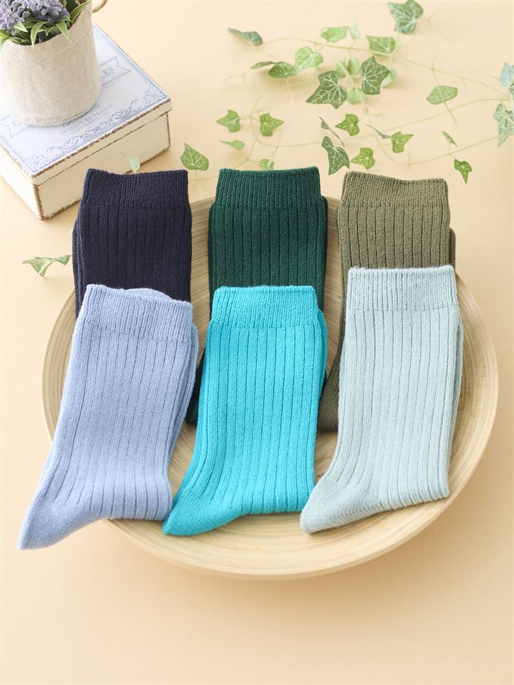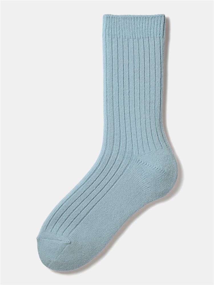 ウール混発熱バルキーヘリンボーン柄ソックス18cm丈
