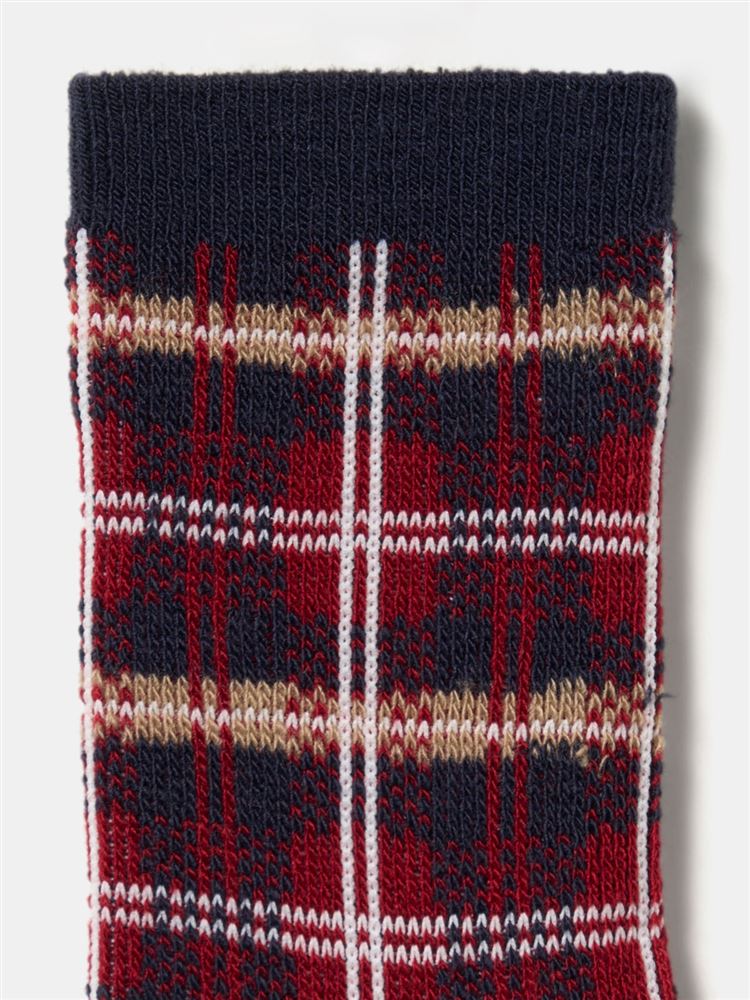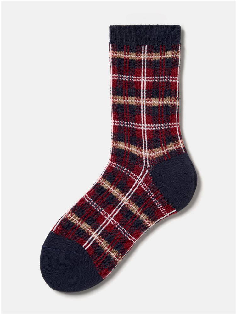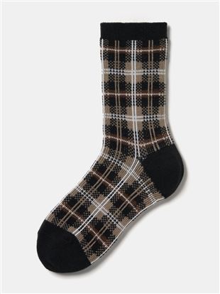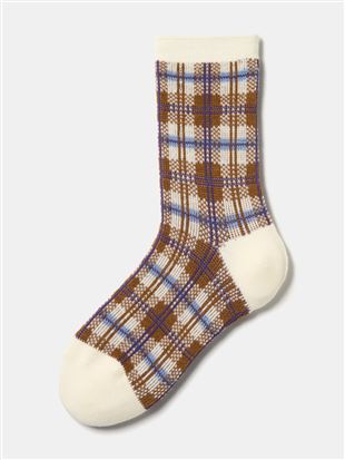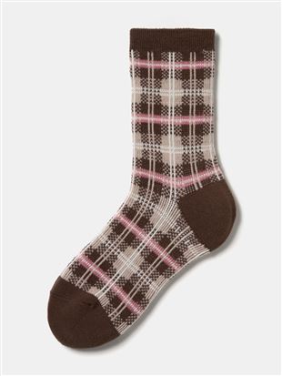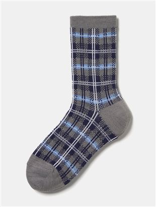 カシミヤ混ブロックチェック柄ソックス18cm丈